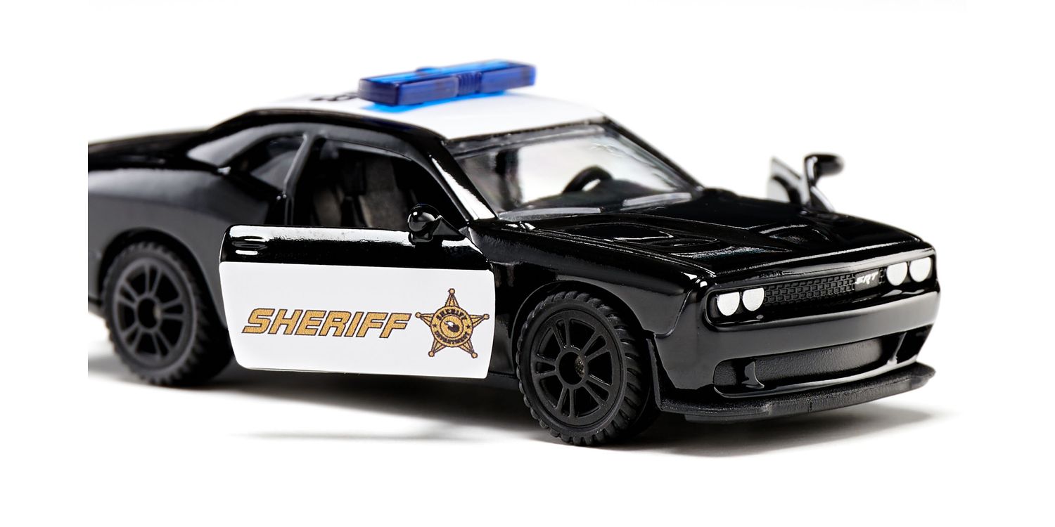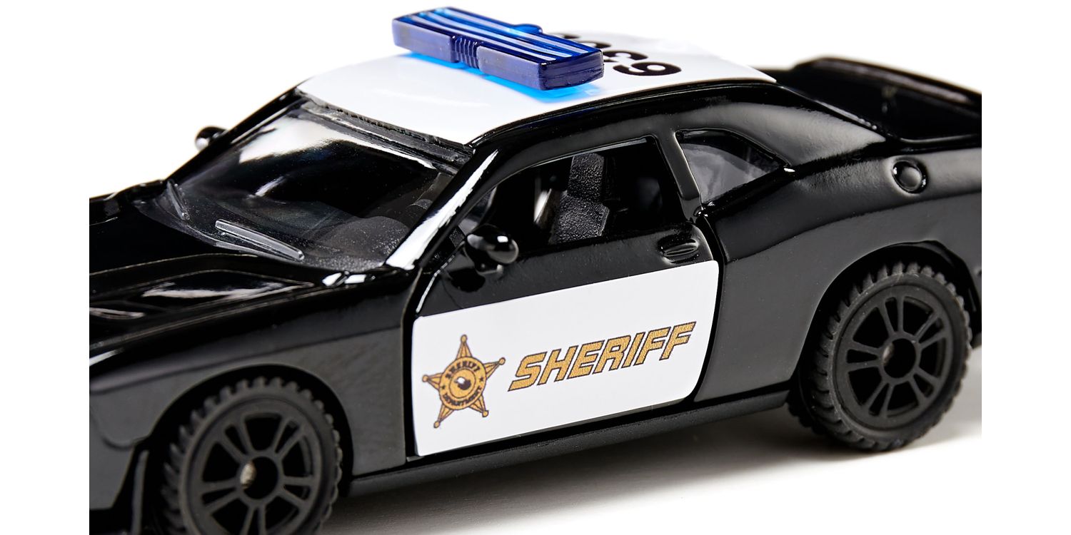 The safety of their residents comes first for the County Sheriff. 48 of the 50 Federal States in the United States employ the law-and-order services of a Sheriff, a specially elected law enforcement officer. When chasing perpetrators all across, at times, very rural areas with long stretches of federal roads, the sheriff needs all the available horsepower an engine can generate - such as that of the legendary Dodge Challenger SRT. The V8 engine of this hot rod can deploy a thunderous 700 horsepower. The wide tyres made of rubberised material have trouble taming and transferring such enormous power to the road – theatrical tyre squealing is thus guaranteed. The inserted headlamps give this hot rod the look of a ferocious beast. The doors can be opened wide, making the effort of stepping in and out of the car a breeze. Serving as the official vehicle of the County Sheriff, the Dodge is painted in the characteristic black and white of the US police and also bears the golden badge and the lettering SHERIFF on the sides. Nothing left to do, but turn the blue light on and take off in pursuit.