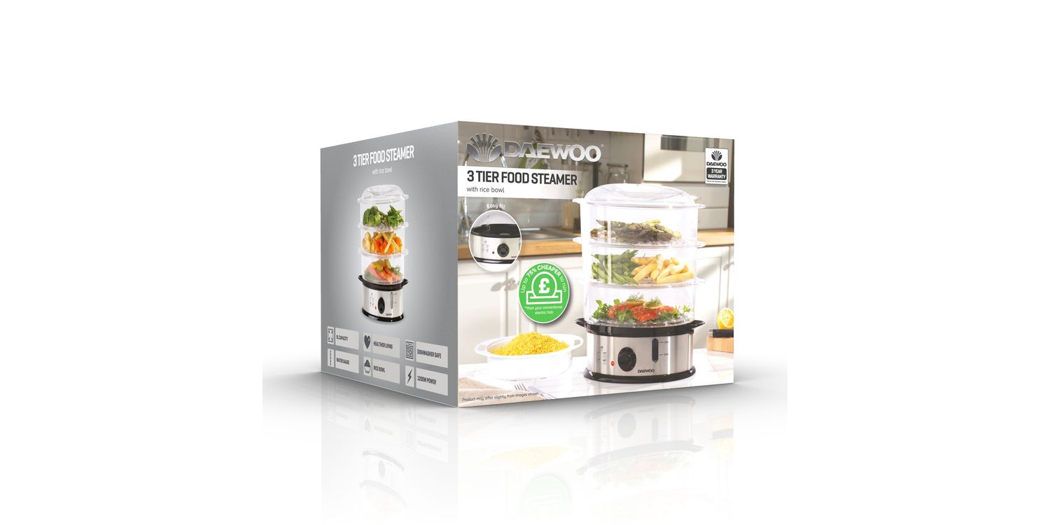 The Daewoo 3 Tier Food Steamer is your ideal kitchen companion for creating nutritious and delicious meals with ease. Perfect for steaming a wide range of foods like vegetables, fish, meats, rice, and more, this versatile appliance allows you to prepare a complete meal using just one appliance. With three spacious 3 litre baskets, you can steam different ingredients simultaneously or use as many baskets as you need, making it suitable for both small and large meals. Dimensions: 23H x 29.5L x 29.5W cm