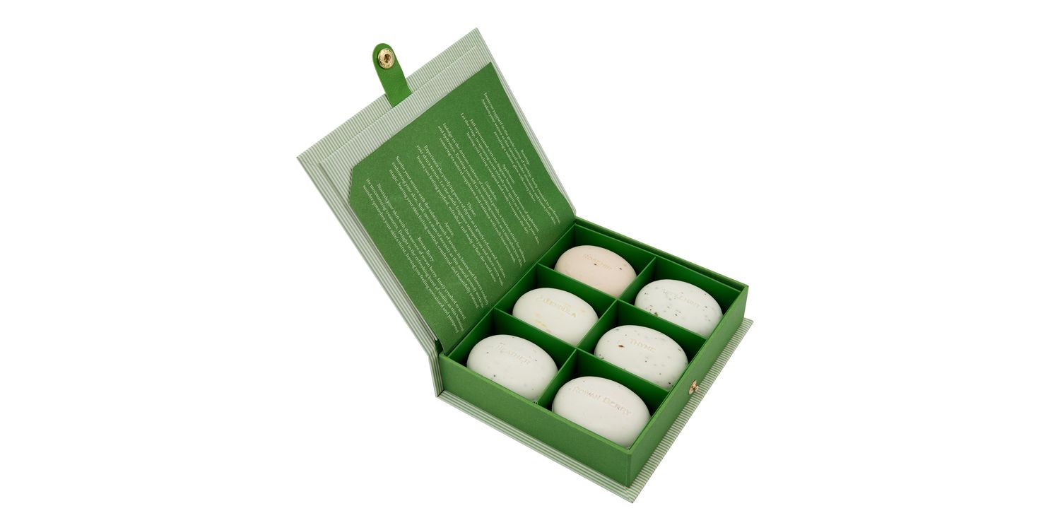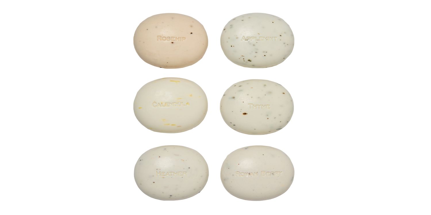 Inspired by the traditional process of collecting and storing botanicals, each soap has carefully selected natural plant extracts and Fragrances.  Each artisanal soap is enriched with grains harvested from natural herbs and plants. Imbued with wholesome properties to uplift and soothe the senses. Formulated with a unique blend of natural botanical extracts, herbal ingredients and carefully selected Fragrances, experience the power of nature’s berries, leaves and petals. Rosehip, Rowanberry, Heather, Thyme, Calendula & Applemint.