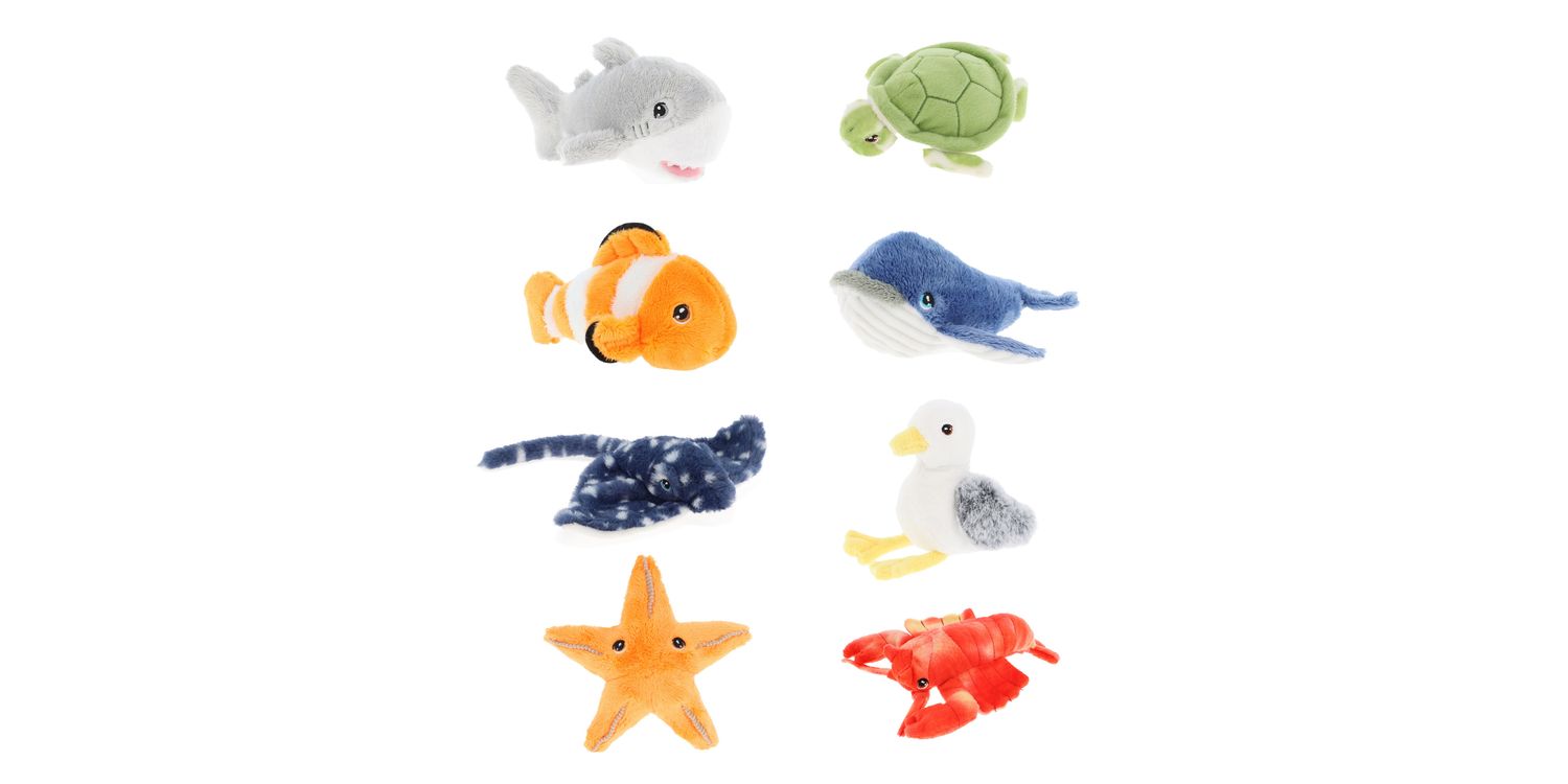 This beautiful collection of mini collectables features cutting edge luxuriously super soft eco-friendly fabrics paired with embroidered detailing and eyes. The range is 8 assorted made up of shark, clown fish, ray, starfish, turtle, whale, seagull & lobster.