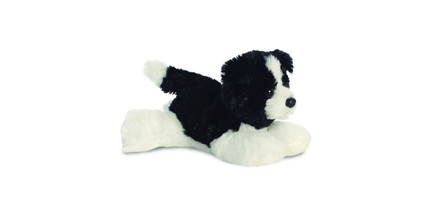 Soft, cute and cuddle the Mini Flopsie Cami Border Collie from Aurora Toys inner filled fibre and beans made from recycled plastic materials.