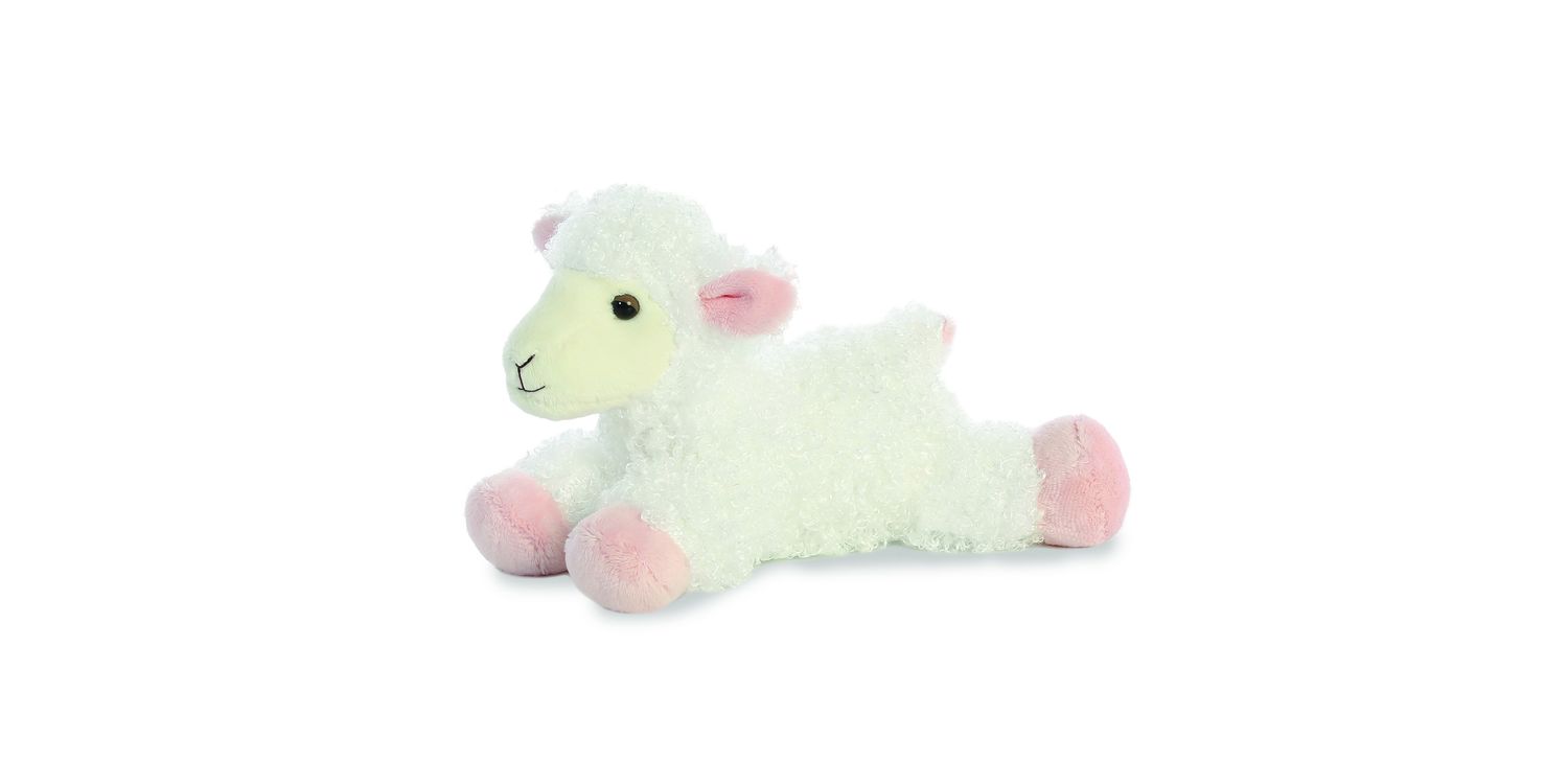 Soft, cute and cuddle the Mini Flopsie Lana Lamb from Aurora Toys inner filled fibre and beans made from recycled plastic materials.