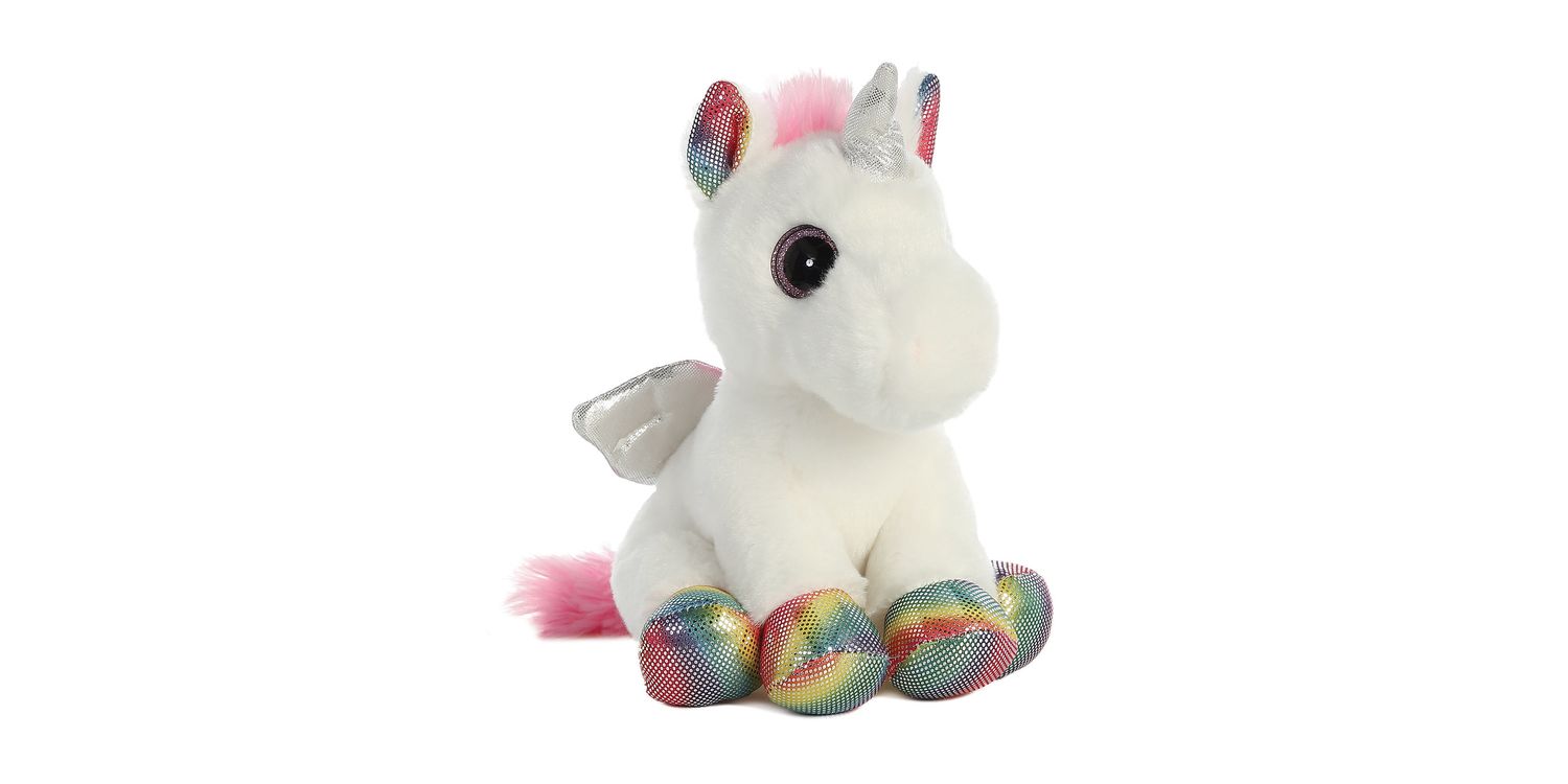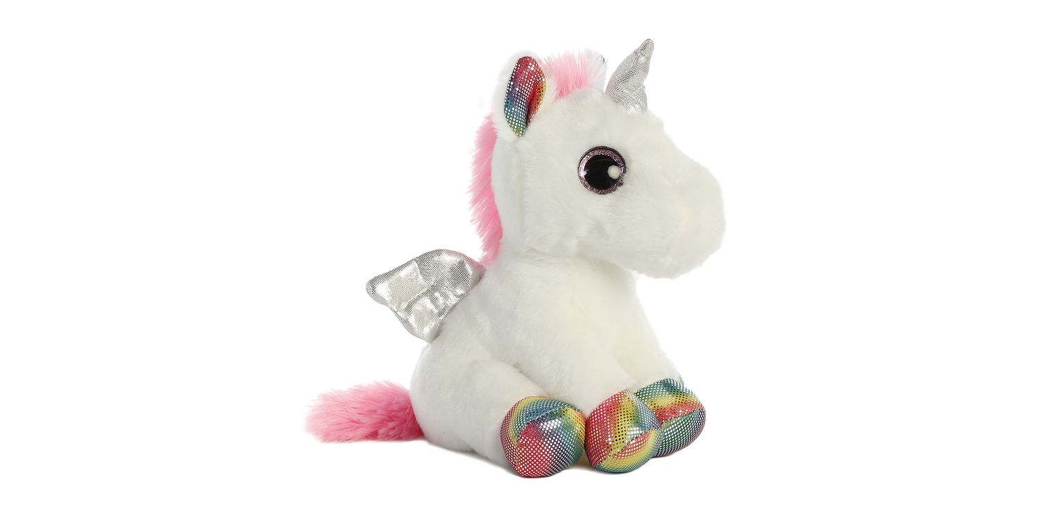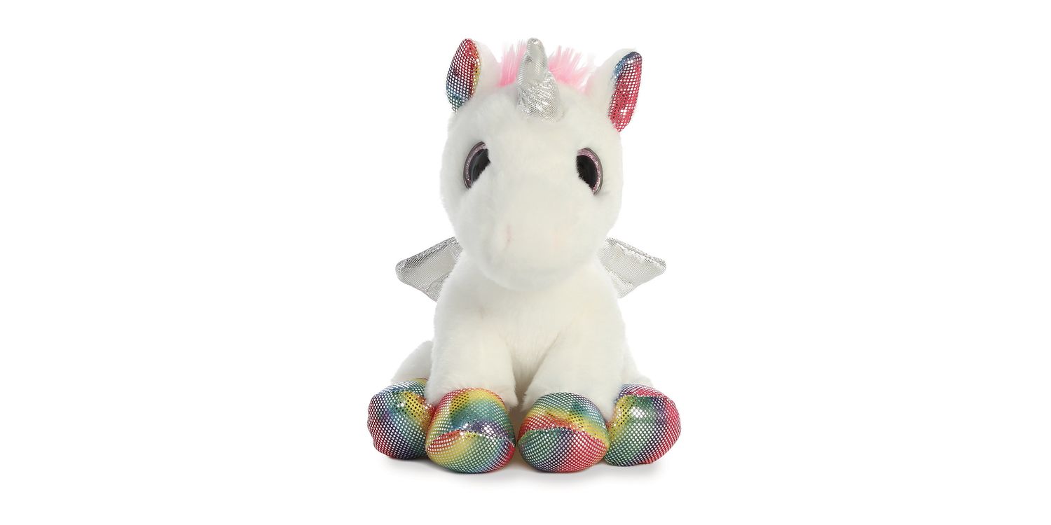 Spirit has a beautiful white body which is super-soft and perfect for cuddles. She has a gorgeous multi-coloured sparkly material on her hooves, ears and wings which compliments her beautiful sparkly eyes.