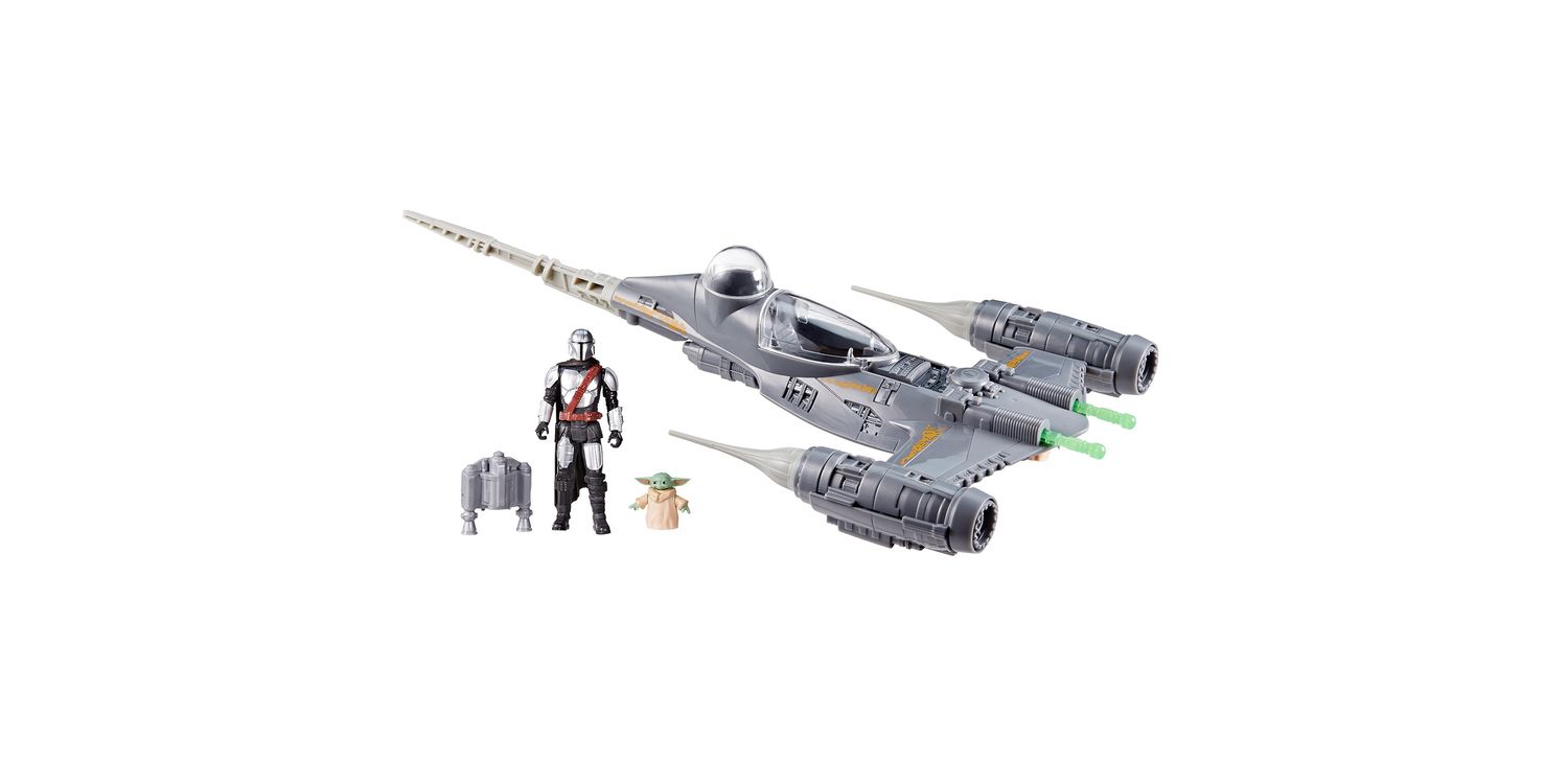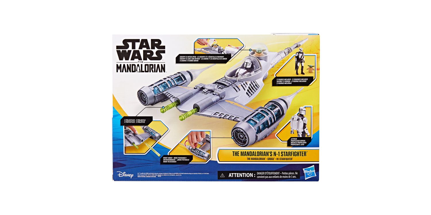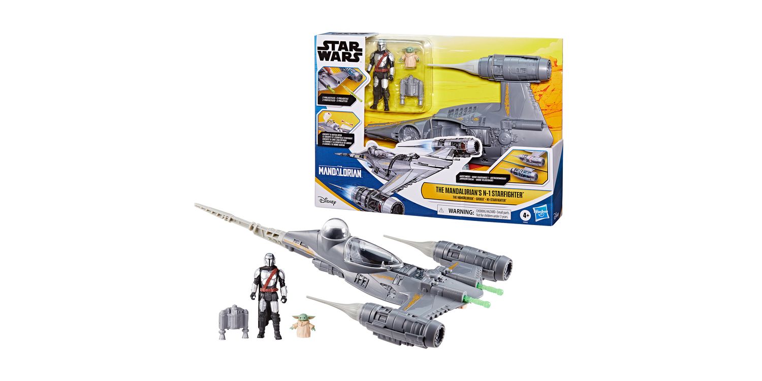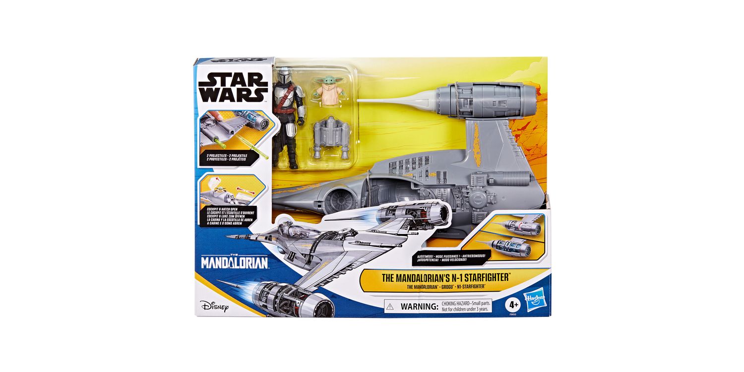 Take playtime to the next level with the Star Wars Epic Hero Series The Mandalorian's N-1 Starfighter set! This Mandalorian toy comes with the N-1 Starfighter, a Mandalorian action figure, a Grogu mini action figure, and 4 accessories. Place the Mandalorian figure in the cockpit, seat Grogu in his very own hatch, and load the 2 included projectiles into the ports on the ship. Now you're ready to take on the galaxy! Launch projectiles with the push of a button and even engage boost mode, which reveals translucent ship parts by sliding the engines on the sides of the ship. Star Wars Epic Hero Series action figures for boys and girls make great gifts for the Star Wars fan in your life. Look for even more figures and vehicles to collect across Hasbro's Epic Hero Series world of play, featuring kid-favourite characters and entertainment-inspired design. (Each sold separately. Subject to availability.)