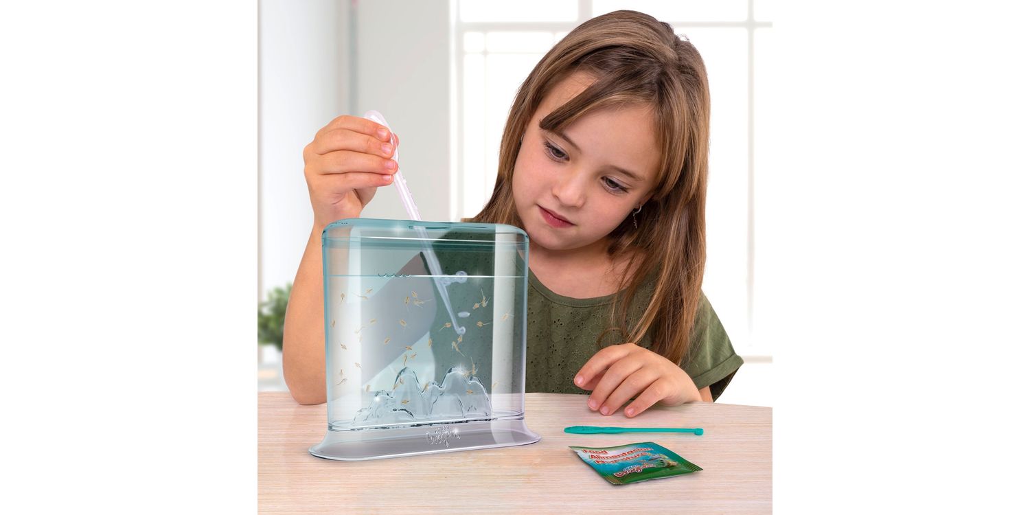 This cool, clear tank kit contains everything you need to get started including the tank, preserved eggs, food, pipette, feeding spoon and full instructions. Just add bottled water and they miraculously hatch within just 2-3 days.