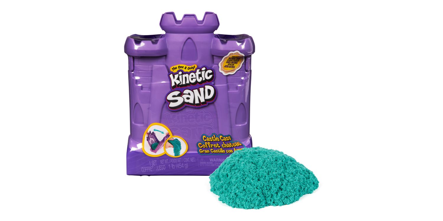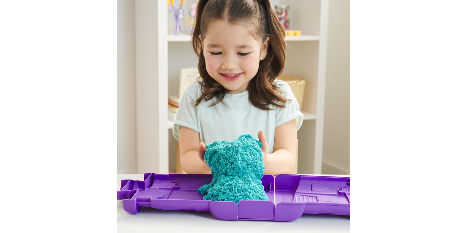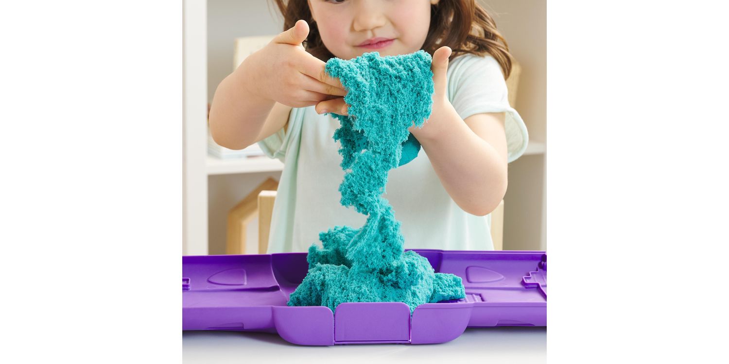 Feel the fun with the Kinetic Sand Castle Case. This Kinetic Sand kit includes 453g of teal Kinetic Sand and features a container that unfolds into a play space. Kids can open the case and unleash endless free-flowing creativity as they mould, shape and squish the teal sensory sand into incredible sand art or anything they can imagine. The Castle Case is designed to lay flat and keeps the sand contained for hours of open-ended play. The One and Only Kinetic Sand is made from natural sand that sticks to itself for easy clean-up. It never dries out, so you can create again and again. Let it flow through your hands — it’s so satisfying, you won’t be able to put it down. After play, the Castle Case folds back up for convenient storage and easy clean-up until next time. Kinetic Sand is an exciting alternative to arts and crafts modelling clay and is a welcome addition to the craft table, sensory bin, kids’ activities time and Montessori toys. Kinetic Sand promotes fine motor skills and creativity in kids aged 3 and up through independent tactile play. Get your hands in the sand with the Kinetic Sand Castle Case.