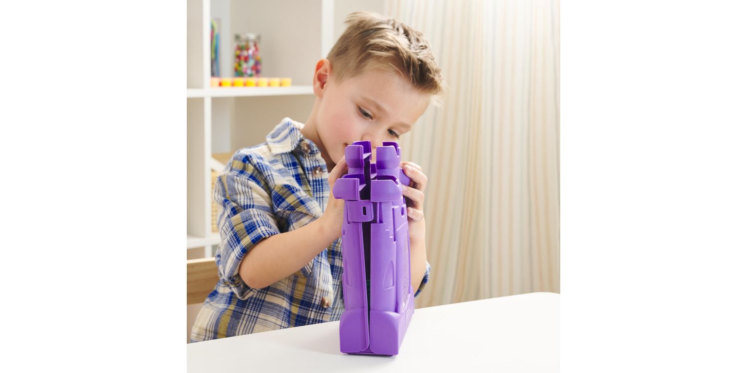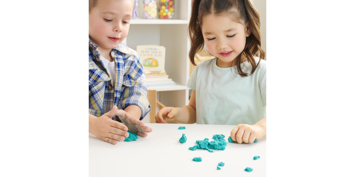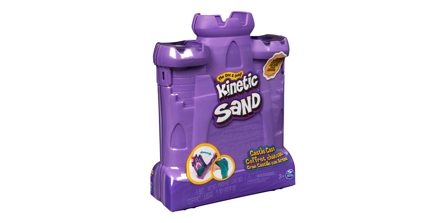 Feel the fun with the Kinetic Sand Castle Case. This Kinetic Sand kit includes 453g of teal Kinetic Sand and features a container that unfolds into a play space. Kids can open the case and unleash endless free-flowing creativity as they mould, shape and squish the teal sensory sand into incredible sand art or anything they can imagine. The Castle Case is designed to lay flat and keeps the sand contained for hours of open-ended play. The One and Only Kinetic Sand is made from natural sand that sticks to itself for easy clean-up. It never dries out, so you can create again and again. Let it flow through your hands — it’s so satisfying, you won’t be able to put it down. After play, the Castle Case folds back up for convenient storage and easy clean-up until next time. Kinetic Sand is an exciting alternative to arts and crafts modelling clay and is a welcome addition to the craft table, sensory bin, kids’ activities time and Montessori toys. Kinetic Sand promotes fine motor skills and creativity in kids aged 3 and up through independent tactile play. Get your hands in the sand with the Kinetic Sand Castle Case.