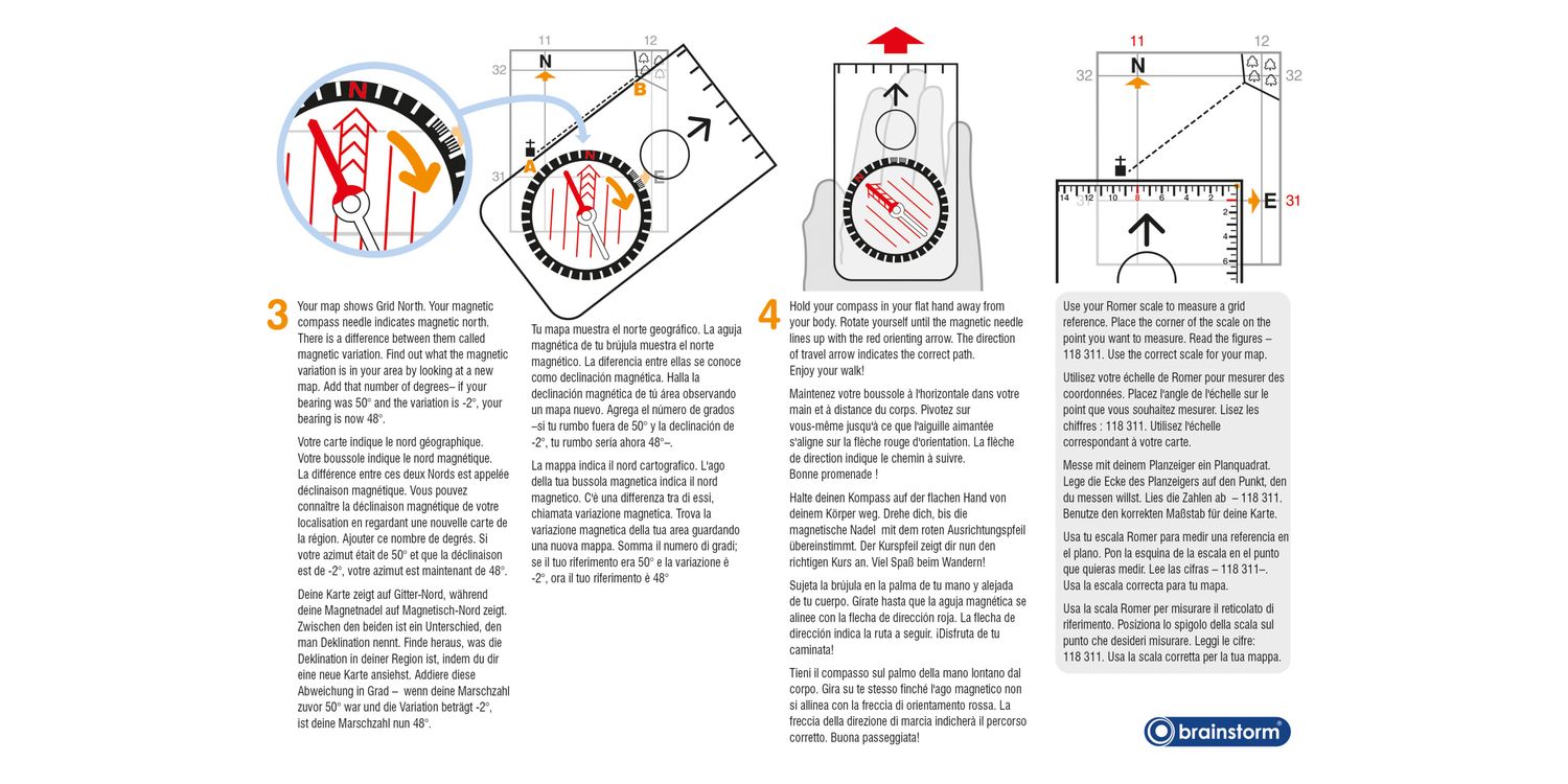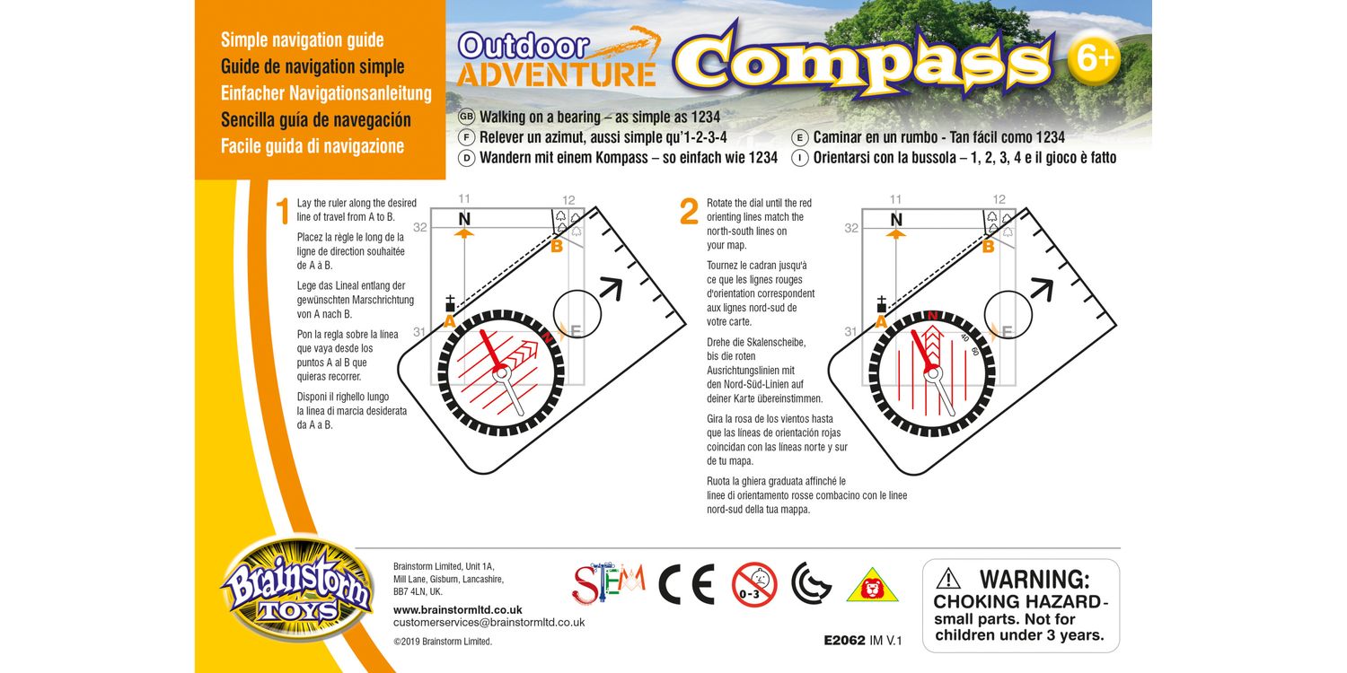 Perfect for young navigators keen to explore the outdoors. Ideal for Guides and Scouts. Use for hiking, orienteering and expeditions. Includes a simple navigation guide, which explains walking on a bearing and grid references. 125 x 60mm compass includes magnifier and direction of travel arrow. With measuring scales in mm and inches plus 1:25,000, 1: 50,000 and 1: 63,360 Romer scales. Waterproof and with lanyard.