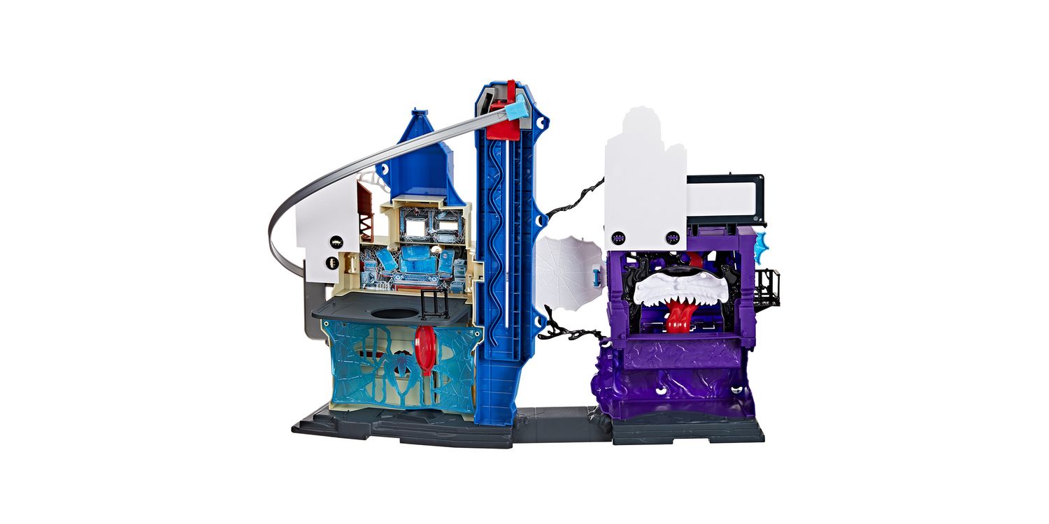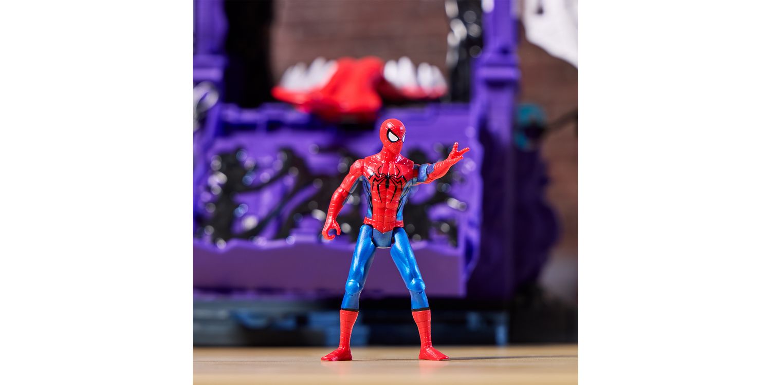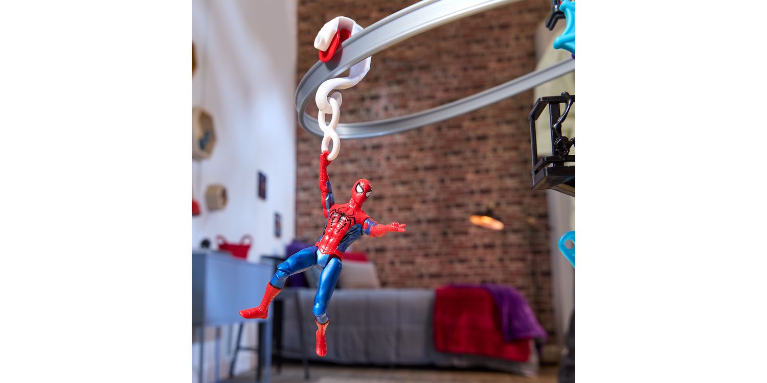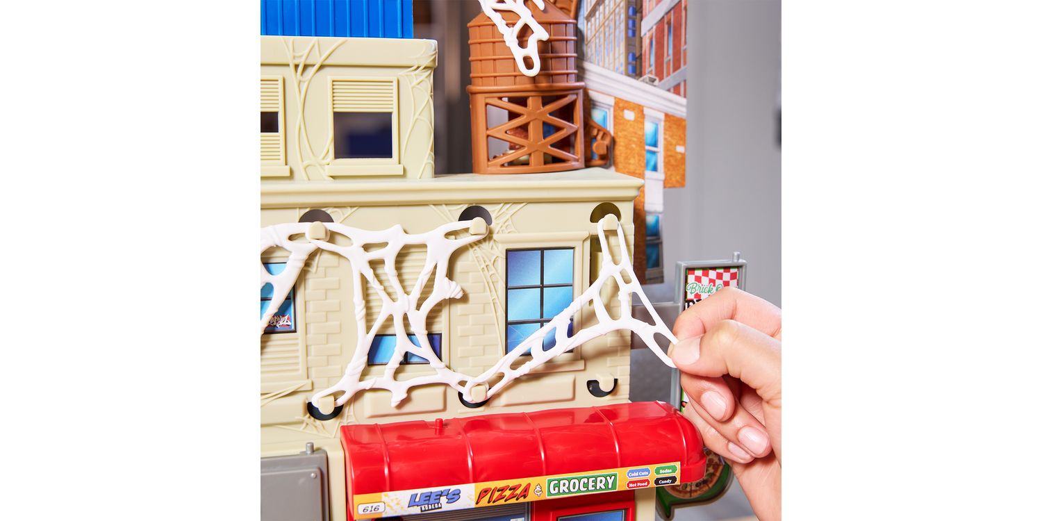 Imagine saving the city from Venom with the Marvel Spider-Man Web Slinging City Playset! This massive toy set stands over 18 inches tall and boasts over 30 friendly neighbourhood features, including 360 degrees of play. Kids ages 4 and up can enjoy hours of excitement, sending the included Spidey toy swinging throughout the city on a 38-inch repositionable zipline or simulating real wall-crawling, climbing action. 10 included stretchy webs attach to the playset and additional 4-inch Epic World of Action figures (sold separately. subject to availability) can be held captive them. But watch out for the flip-down wall that reveals a huge, chomping Venom face, ready to gobble up the Marvel Super Heroes! This cool toy set will be the perfect gift for kids or a great addition to any Super Hero toy collection. Look for more Marvel toys to collect or gives as gifts, including figures, vehicles, playsets, & roleplay gear! (Each sold separately. Subject to availability.)