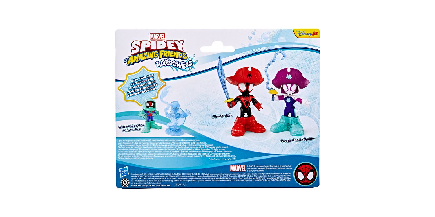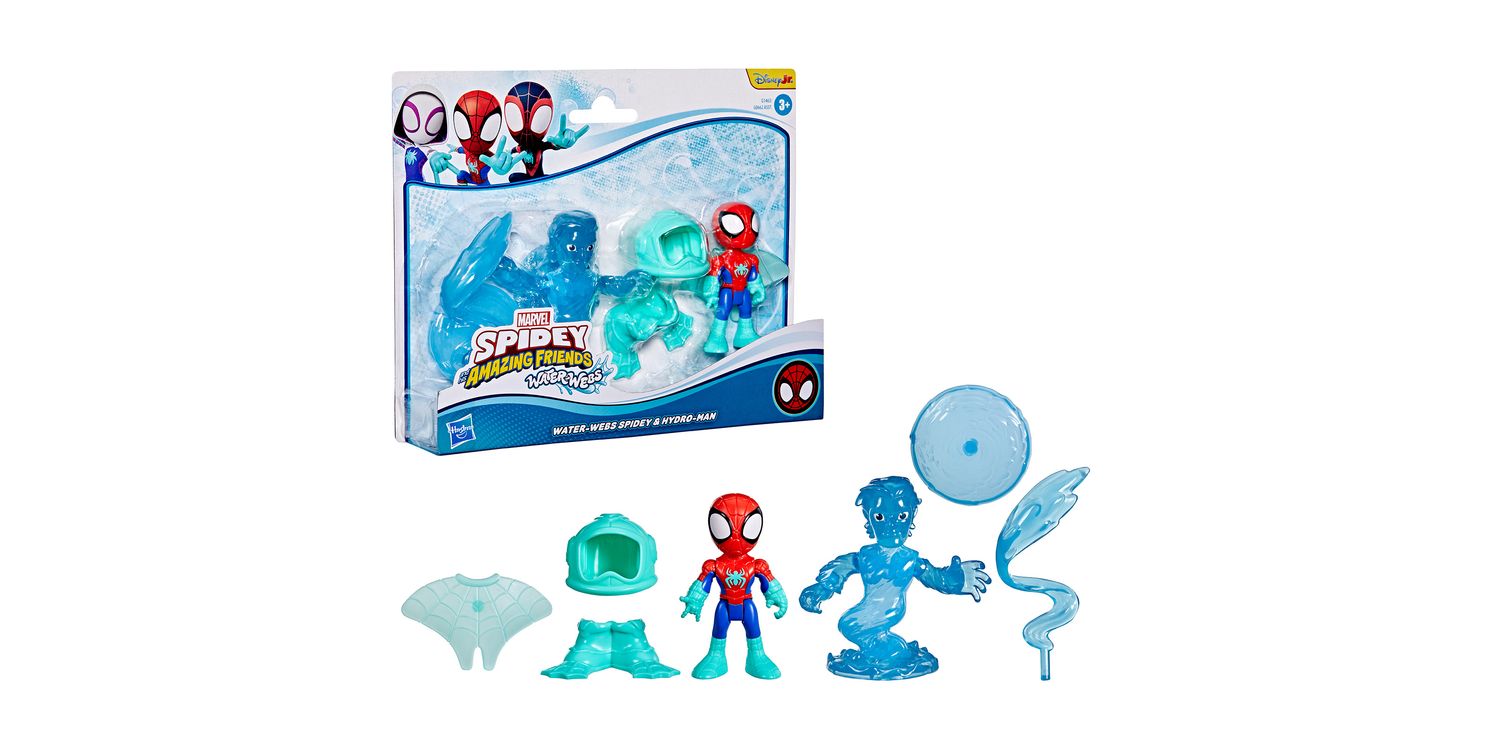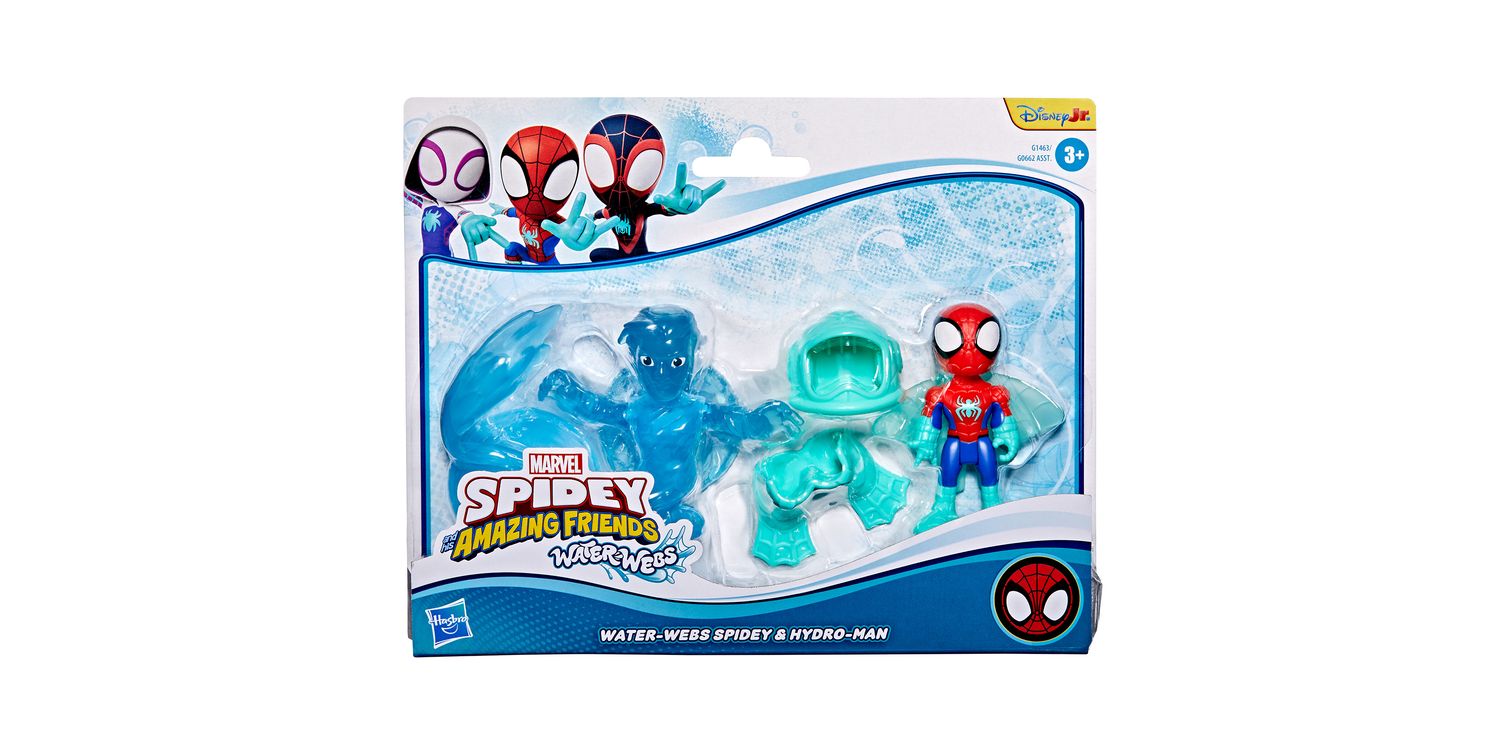 Join Team Spidey on the latest aquatic adventures with these collectible Marvel Water-Webs toy sets! These 3-inch (7.6 cm) Marvel Spider-Man toys feature entertainment-inspired design and deco, as well as detachable accessories that attach to the figures. Encourage big, imaginative, adventure play for kids ages 3 & up with this Marvel action figure 2-packs! Look for even more Spidey and his Amazing Friends figures, to build a Super Hero web slinger collection or give as cool Marvel gifts for preschool kids! (Each sold separately. Subject to availability.)