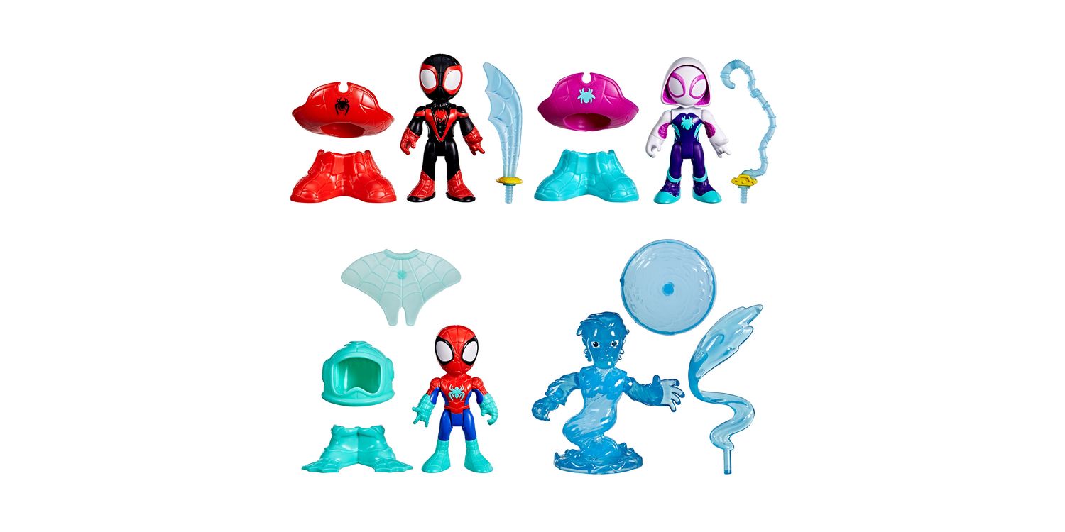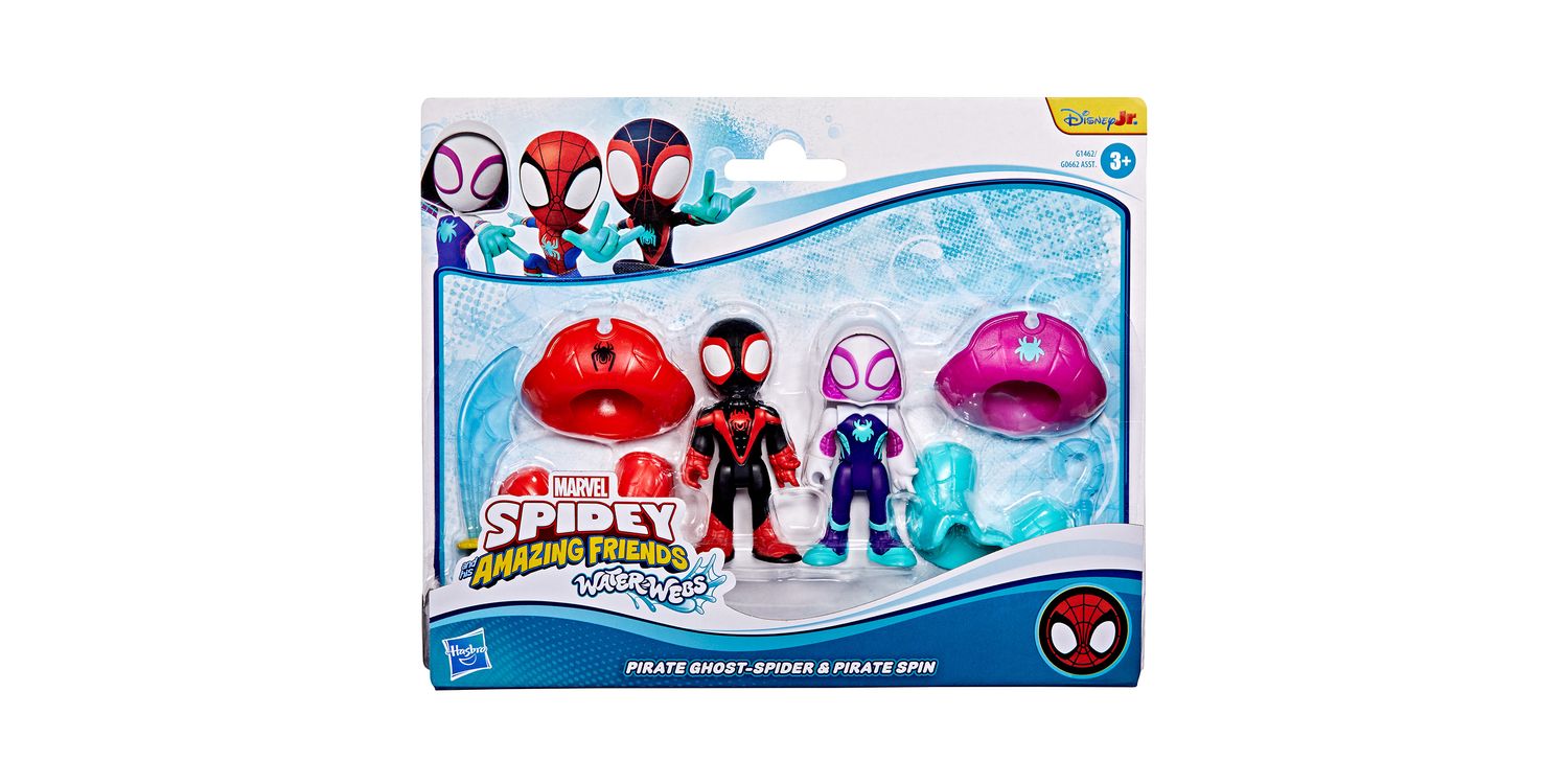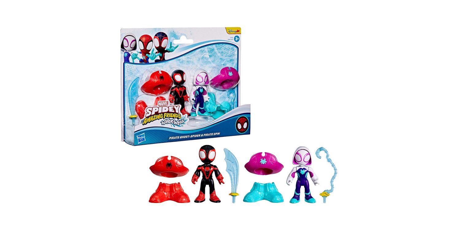 Join Team Spidey on the latest aquatic adventures with these collectible Marvel Water-Webs toy sets! These 3-inch (7.6 cm) Marvel Spider-Man toys feature entertainment-inspired design and deco, as well as detachable accessories that attach to the figures. Encourage big, imaginative, adventure play for kids ages 3 & up with this Marvel action figure 2-packs! Look for even more Spidey and his Amazing Friends figures, to build a Super Hero web slinger collection or give as cool Marvel gifts for preschool kids! (Each sold separately. Subject to availability.)