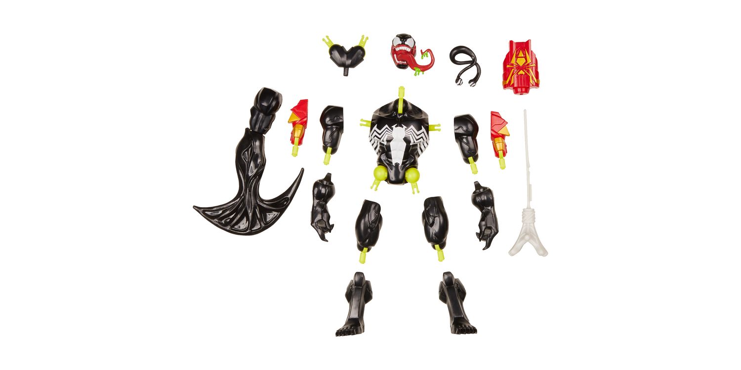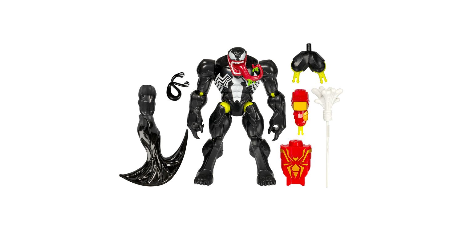 Includes: Venom figure, 3 accessories, and 4 Iron Spider pieces.