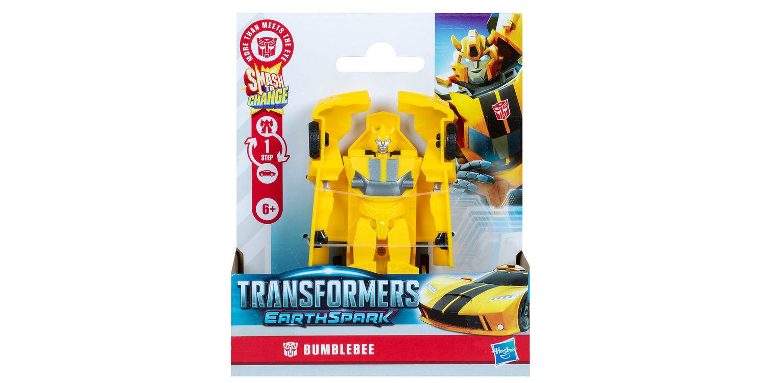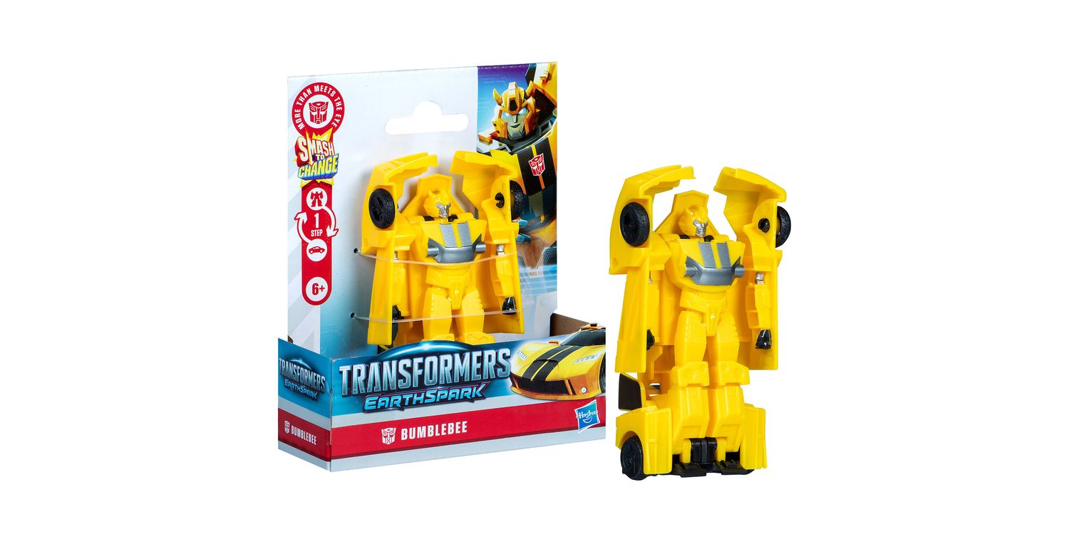 Smash into action with the Transformers: EarthSpark 1-Step Smash Changer Bumblebee action figure! Convert this Transformers action figure from car mode into robot mode by smashing it on a flat surface! The car toy pops up into a robot toy!