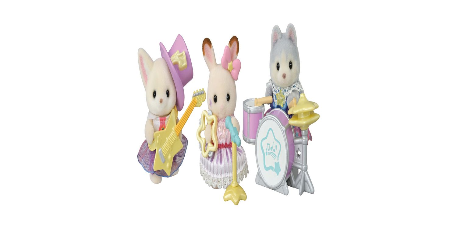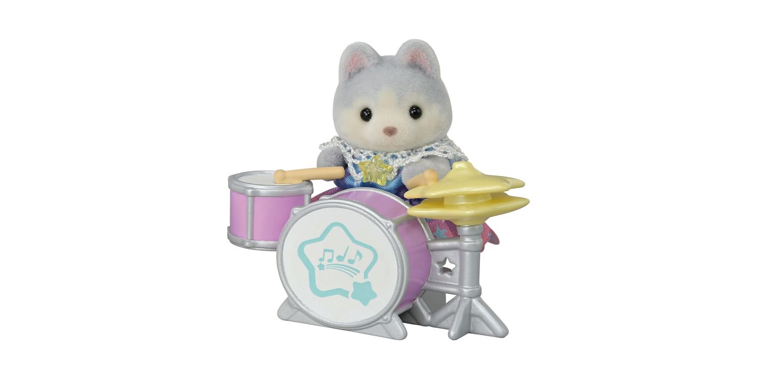 This is a set of three figures featuring the Chocolate Rabbit baby, Fennec Fox baby, and Husky baby wearing starry-themed outfits. It comes with various instruments including a drum, guitar and tambourine. Enjoy a fun concert with the three babies putting on an exciting musical performance.