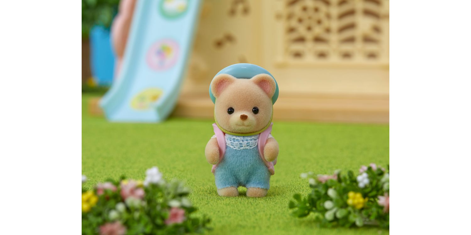 Bear Baby comes with the Bear baby figure, hat and rucksack. The figure can be posed by moving the head, arms and legs. Bear Baby isn't very good at talking to the other children, so at first he didn't have any friends at the nursery. His big sister suggested that he give people flowers or pretty stones instead of talking, and now he's friends with everybody. He looks up to his big sister now! Combine this figure with Bear Family and Bear Twins (sold separately) to complete all the members of the Bear family. Play together with various houses, furniture and other families for even more fun (sold separately).