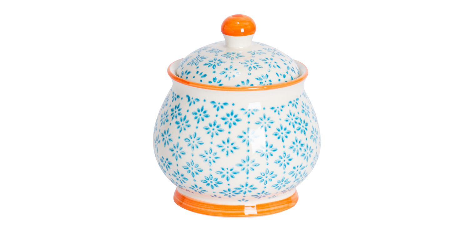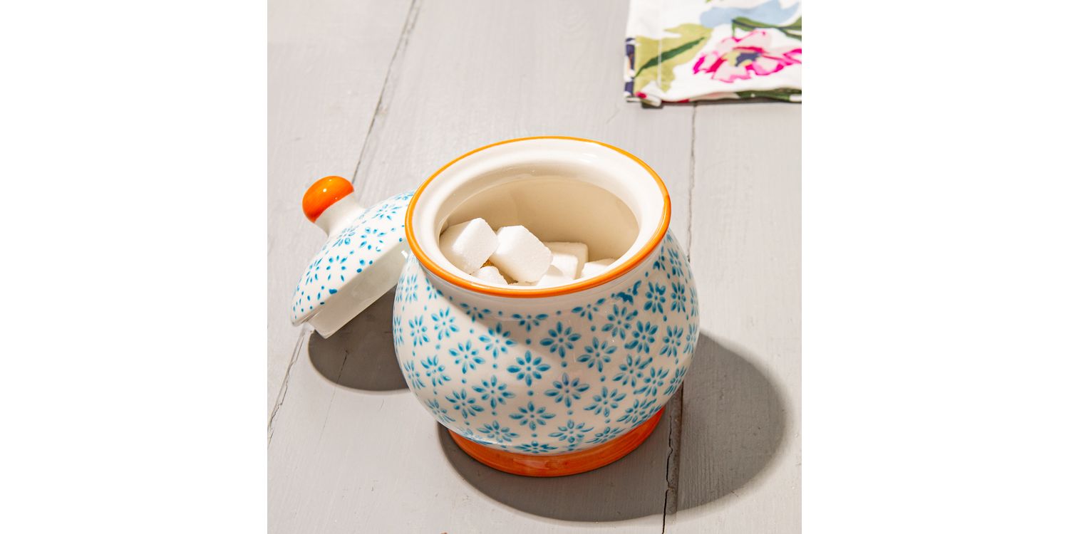Crafted from durable stoneware, this sugar bowl have been lovingly decorated with a floral pattern inspired by classic Japanese print design - Since each pattern is applied by hand, every bowl made is truly unique to you!