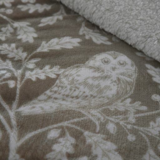 Cute birds perch on woodland fauna on this stunning Dreams & Drapes Lodge, Woodland Owls Fleece Bedspread, in Sage (150cm x 200cm). Keep yourself warm and cosy in bed or wrap yourself up and take this snuggly throw wherever you go with it's soft touch plush face, and sherpa fleece reverse.