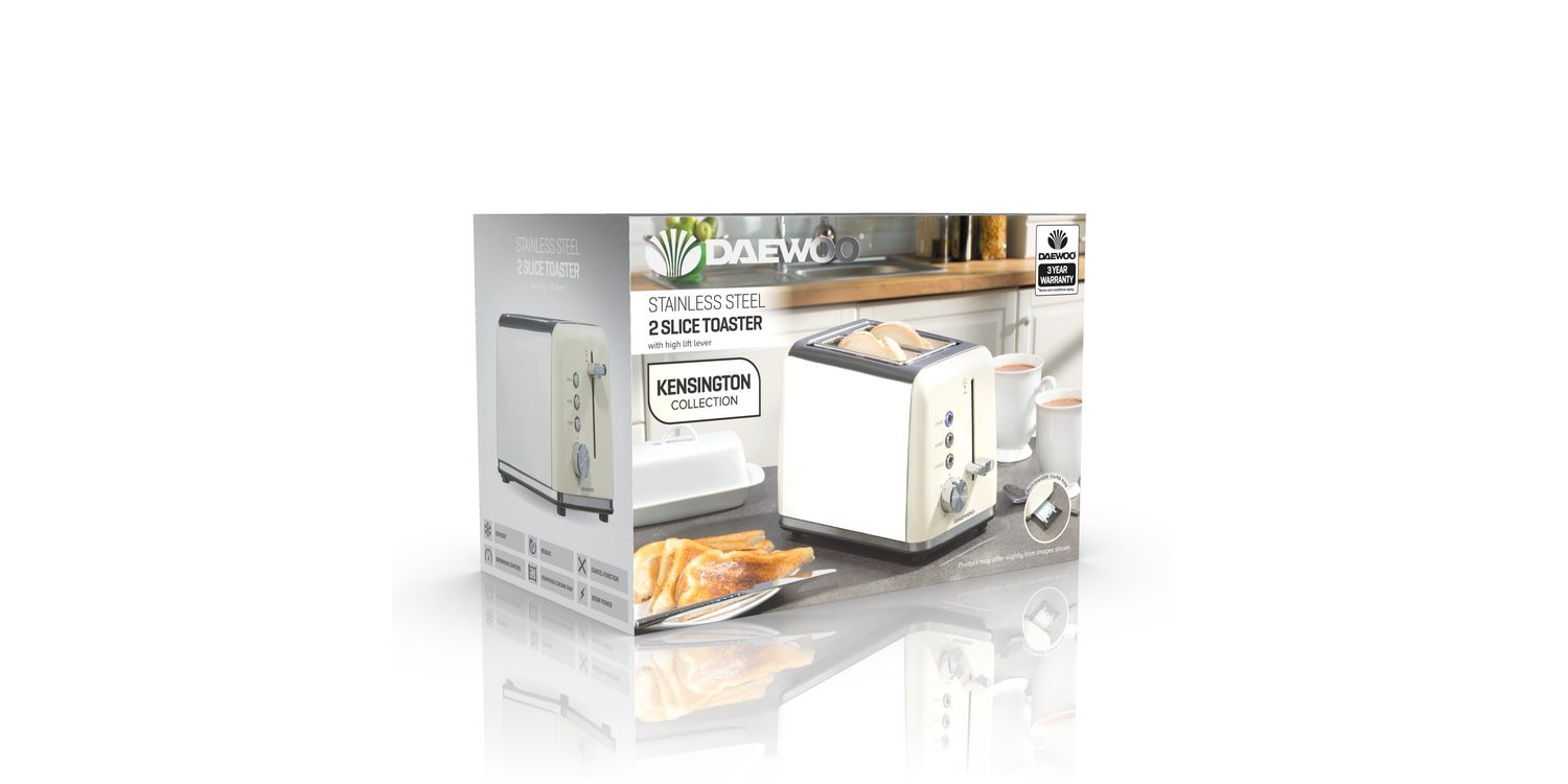 The Kensington 2 slice toaster features a smart cream steel body with a silver accents. This elegant looking electric toaster would make the perfect addition to any kitchen worktop. The Kensington toaster has been designed to guarantee an even toast every time, whilst the built-in browning controls mean you can toast to your preference with ease.