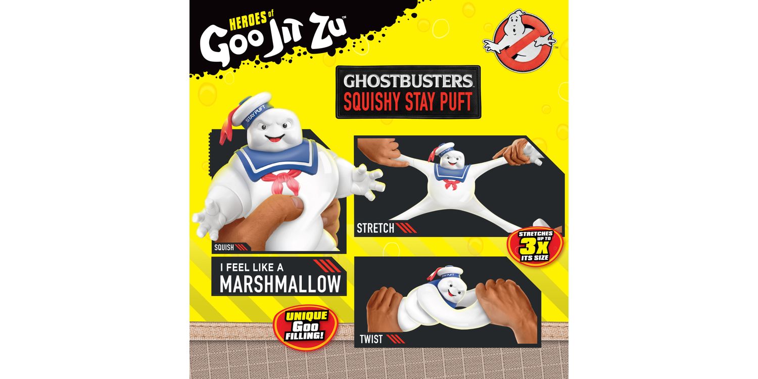 Get ready for some squishy, stretchy fun! Stay Puft, the gigantic, lumbering paranormal monster, from the cult-classic, Ghostbusters has now become a Hero of Goo Jit Zu figure! Kids will be amazed as they squish and squeeze his body. He feels like a Marshmallow! The Ghostbusters Squishy Stay Puft is the first Ghostbusters toy figure from the Heroes of Goo Jit Zu. But not only does he have a unique glucose filling that feels like squishy marshmallow, Stay Puft can be stretched up to 3 times its size! (Up to an amazing 16-Inches/40cm). Twist and stretch Stay Puft's body and watch as it returns to its original 4.25 inch / 10.8cm height and shape. Fans of all ages will love creating new adventures with this cool squishy collectible toy.