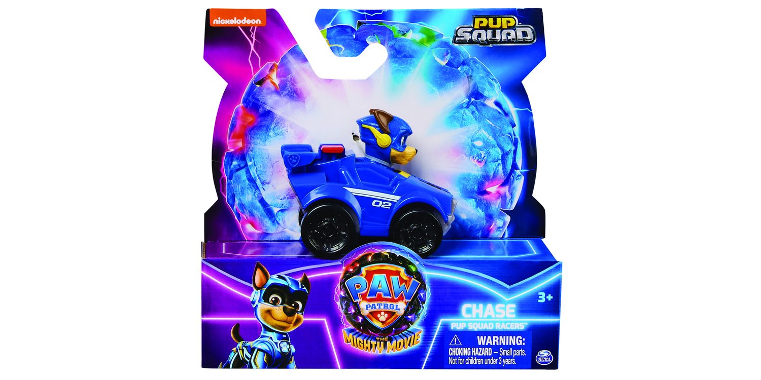 Each PAW Patrol pup is dressed in their authentic PAW Patrol: The Mighty Movie uniform, with their ears moulded back so they look like they’re racing at full speed, just like they do on the big screen (each sold separately).