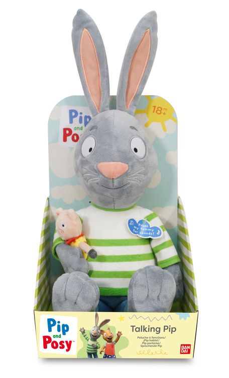 Immerse yourself in the heartwarming world of Pip and Posy with our delightful talking plush toys, designed to capture the magic of friendship and adventure. Perfect companions for bedtime cuddles or daytime escapades these soft plushies with sounds and clips of the theme tune from the TV show are crafted with premium materials, ensuring a cuddly and comforting experience for children. Standing 32cm tall, our Pip and Posy plush toys, dressed in their signature everyday outfits from the cherished TV show and accompanied by their toy companions Piggy or Froggy, invites children to embark on imaginative journeys filled with joy and laughter. Based on the beloved series of British children's picture books by Camilla Reid and Axel Scheffler, Pip and Posy are the best of friends whose lives revolve around a wonderful world of play. Packed with warmth and humour, the series, adapted by Magic Light Pictures, is a joyful celebration of their great friendship with all its ups and downs, laughter and games. Come on, let’s play! The books and TV show explore a variety of themes relevant to young children, including friendship, sharing, and problem-solving, imparting valuable life lessons in a wholesome and entertaining manner. Our talking plush characters bring the enchanting world of Pip and Posy to life, encouraging children to engage in imaginative play while learning important values along the way. From sharing adventures to comforting moments, these plush toys serve as cherished companions for children, fostering creativity and empathy in their daily interactions. Whether accompanying little ones on outdoor adventures or snuggling up for bedtime stories, Pip and Posy talking plushies with sounds and songs are the perfect addition to any child's toy collection, providing endless opportunities for fun and exploration. Dive into the magical world of Pip and Posy today and let the adventures begin! From cuddly small plush toys perfect for bedtime snuggles to larger talking plushies that bring the magic of the TV show to life with sounds and clips of the theme tune or a beautiful collection of play figures featuring all the characters from the series, there's something for every fan to love.