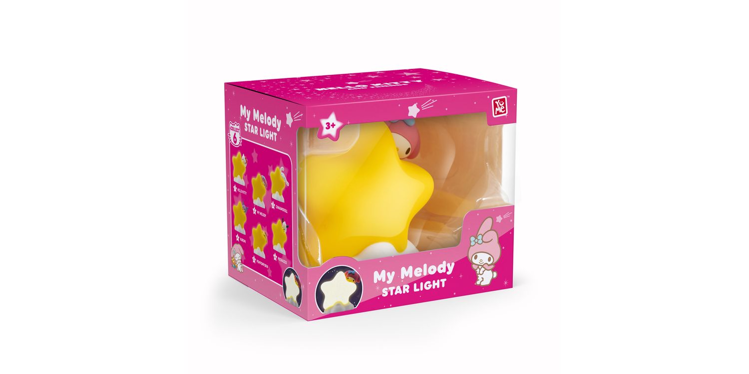 Add a magical glow to your nighttime routine with the YuMe Hello Kitty and Friends Bedside Light Star Series! This enchanting collection features six light-up collectibles, each showcasing a beloved Sanrio character—Hello Kitty, Kuromi, My Melody, Pochacco, Cinnamoroll, and Pompompurin—peeking over a pastel pink star and resting on a fluffy white cloud. Designed to provide a soft, calming hue, these bedside lights are perfect for creating a cozy atmosphere in any bedroom or playroom. The gentle illumination makes them ideal for night-time reading, relaxation, or keeping kids comforted as they drift off to sleep. Each collectible is crafted with high-quality materials and thoughtful details that Sanrio fans will adore. Whether you’re a long-time collector or searching for the perfect gift, the Hello Kitty and Friends Bedside Light Star Series is a charming and functional addition to any space. Collect them all!