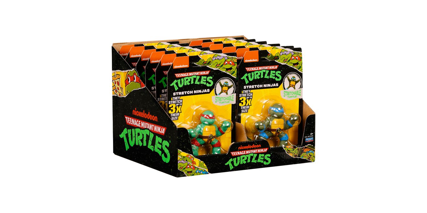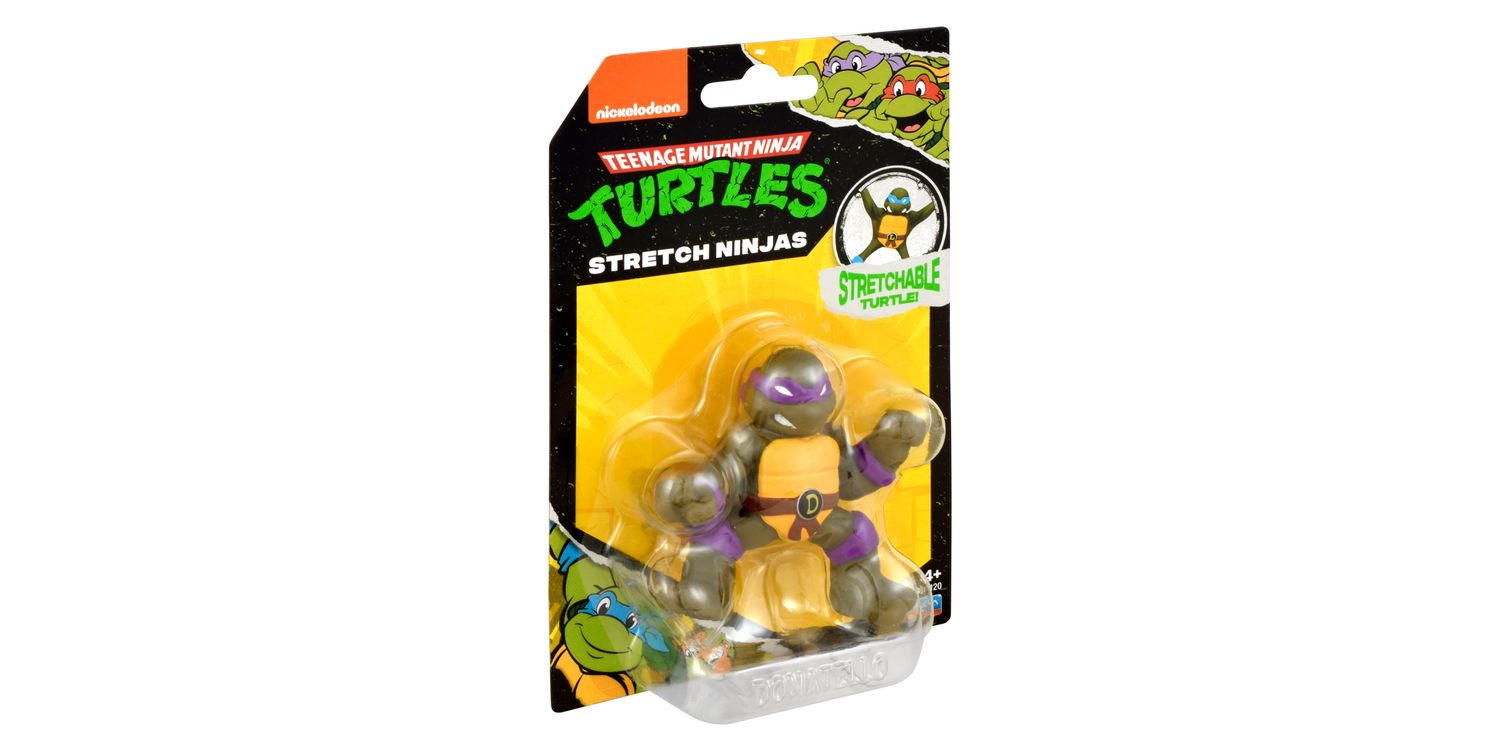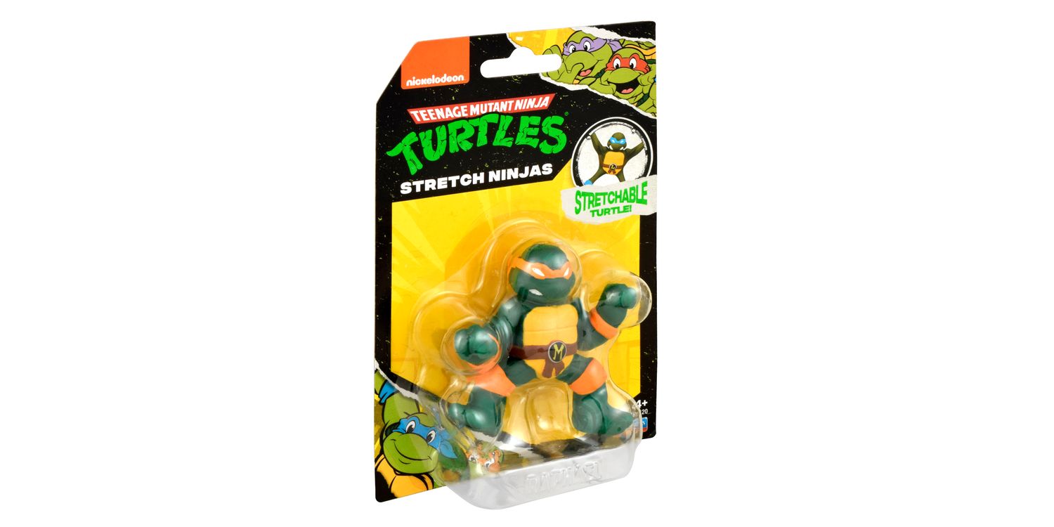 It’s the Teenage Mutant Ninja Stretch Turtles! You can bend them, stretch them, fling them, and twist them in every way! Made of a Mutagen Ooze material that has mutated the Turtle Brothers into the super flexible ninjas, there are no limits to what they can take on. Guess you could call Leonardo a flexible team leader! Now Donatello can flex more than just his brain! Mikey can even reach that pizza at the other end of the table! Now Raph can flex his muscles like never before! Can you collect all four?