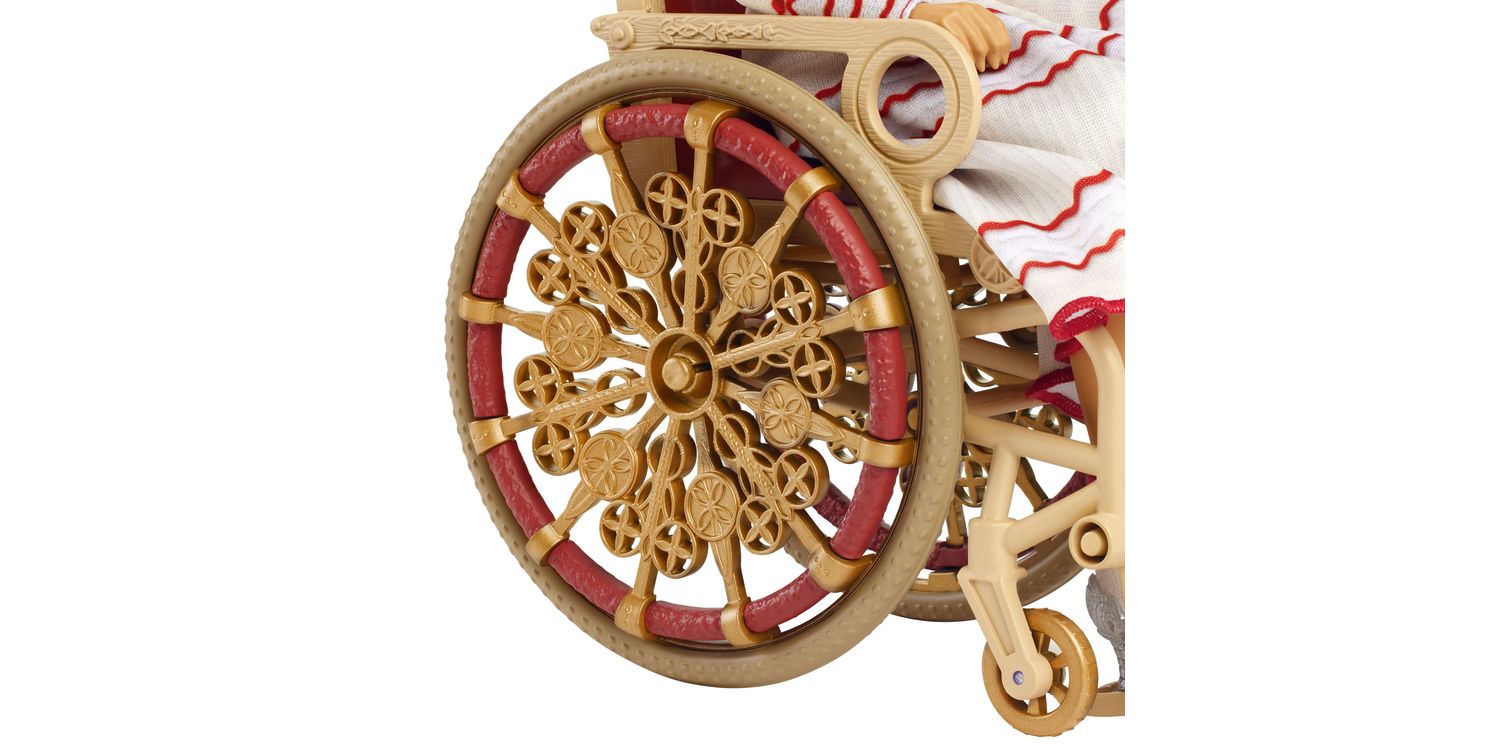 Inspired by Universal Pictures' Wicked, the Nessarose fashion doll captures the heart of sisterhood from the movie! Nessarose doll features her manual, golden wheelchair with ornate details throughout and wears a removable outfit with detailed texture prints and red trim, accessorized with classic, jewelled slippers. With flexibility at the torso, elbows, wrists, and knees, Nessarose has the character's true-to-movie details and her brown, curly hair. Fans will want to collect all the dolls from the land of Oz! Each sold separately, subject to availability. Dolls cannot stand alone. Colours and decorations may vary.