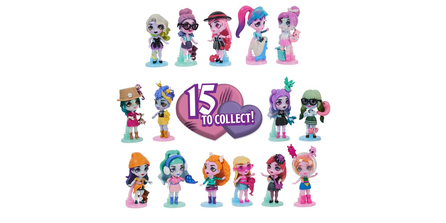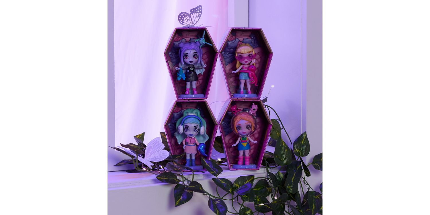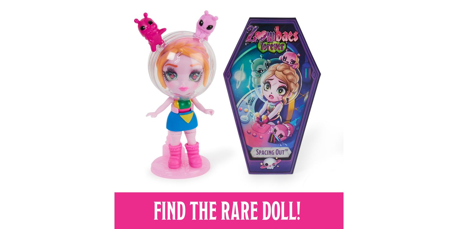 Wild Vibes Zombaes Forever zombie dolls have arrived from the glamyard. These fashionable small dolls feature gorgeous details, humorous names, adorable critter friends and a unique un-coffin-ing unboxing. Pull the tab on the surprise box to reveal the coffin and open it to find your 8.9-cm Zombaes Forever surprise doll. Will you get the rare space ghoul, Spacing Out? In the coffin, you’ll also get 1–2 accessories, 1–2 pets, a sticker sheet, a spinal-cord doll stand and a holographic collector card. After un-coffin-ing, mix and match your character’s hair and legs with any of the Zombaes Forever toys to create new looks — you can even swap their pets. For more surprises, when you lift her hair, you’ll uncover her glittery brain, with one of four designs on it. Each character has a witty name inspired by her unlucky demise. Collect edgy party girl Keep the Party Alive, with her bats; beach girl So Clingy, with an octopus; She’s Buzzin’, with honey and bees; safari-themed Hanging Around, with monkeys; and more. Decorate the coffin with the stickers and display your zombie doll in or out of her coffin. Place the collector card on the coffin’s lid — the exclusive artwork tells her story. With their zombie-chic details, super-cute pets and mix-and-match hair and legs, these girls’ toys are the perfect small toys for pretend play. Un-coffin all 15 Wild Vibes Zombaes Forever zombie toys and look for the Deluxe Sets and Abandoned Pet Shop doll house playset (mini dolls and sets each sold separately). Zombaes Forever surprise toys for girls are great gifts for 4-year-old girls and up. Bring home the Zombaes Forever Wild Vibes dolls and live your best afterlife. SURPRISE COLLECTIBLE DOLL: Each drop-dead gorgeous Zombaes Forever Wild Vibes doll includes a coffin, 1–2 doll accessories, 1–2 clingy pet friends, stickers, a spinal-cord stand and a holographic collector card UNIQUE UN-COFFIN-ING: These 8.9-cm dolls for girls have an exciting unboxing. Pull the tab on the surprise box to find her coffin and open it to reveal your small zombie doll. Will you find the rare one? MIX-N-MATCH LOOKS: Perfect for pretend play, swap your character’s pets or hair and legs with another doll to switch up her look. Lift her hair and discover 1 of 4 designs on her glitter brain 15 DOLLS TO COLLECT: Un-coffin all 15 Zombaes Forever Wild Vibes girls’ toys (each sold separately), including So Clingy, OverBEARing, Keep the Party Alive, the rare Spacing Out and more SURPRISE TOYS FOR 4-YEAR-OLD GIRLS AND UP: These zombie dolls and accessories are great birthday gifts, stocking fillers or special occasion gifts for kids. Perfect toys for Halloween Includes: 1 Zombaes Forever Doll, 1–2 Zombaes Forever Pets, 1–2 Accessories, 1 Doll Stand, 1 Sticker Sheet, 1 Trading Card, 1 Collector Sheet