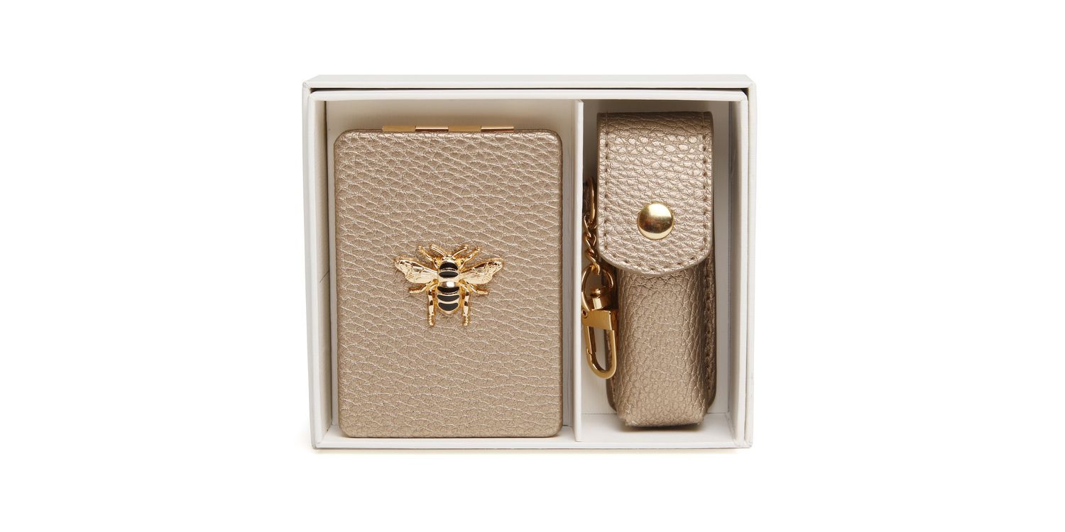 Luxury & Design: This set includes our popular vegan leather-covered Oblong mirror compact, a cornerstone of our design collection, known for its elegant appeal and practicality for both gifting and personal use.