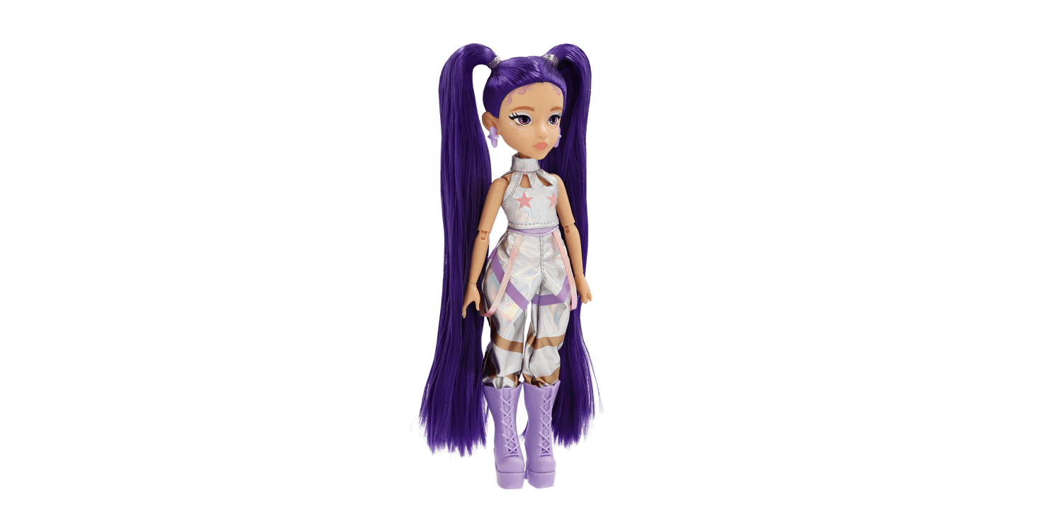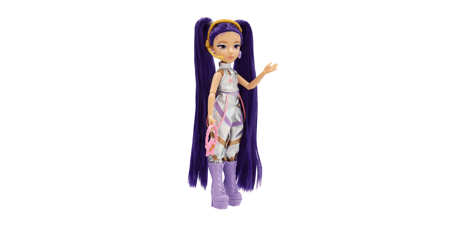 With her signature purple twin-tail hair and shimmering Starlight style, she shines with clarity, hope and confidence. Each doll includes 3 fashion accessories that complete her performance- ready look. Perfect for fans who love music, fashion, and creativity.