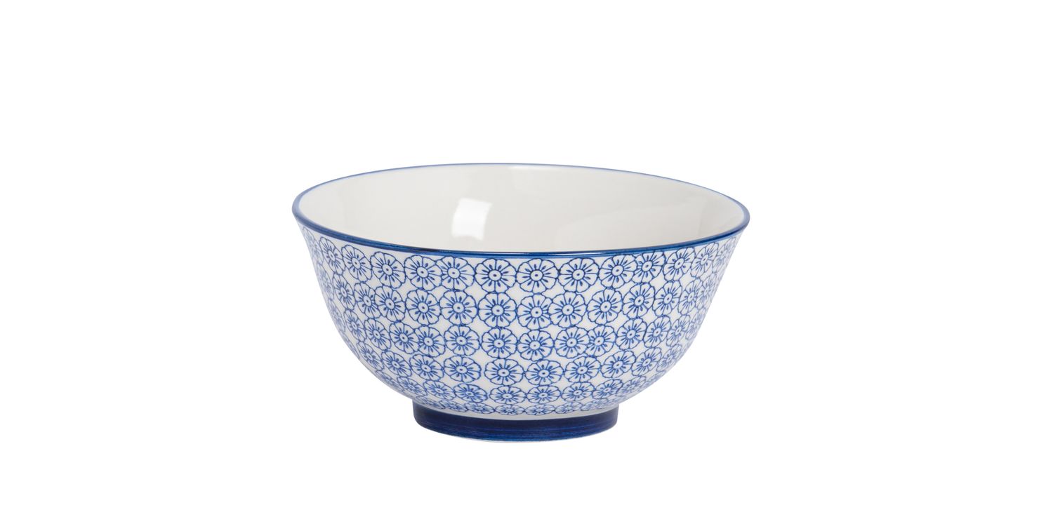 Crafted from durable stoneware, these dishes have been lovingly decorated with a pattern inspired by classic Japanese print design.