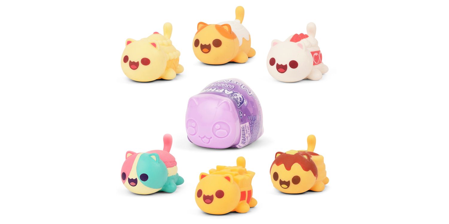 Aphmau, the mega star female gamer and YouTube creator, is known for her love of cats and her collection of adorable MeeMeows! Squishy Aphmau MeeMeow merch has arrived! For the first time you can collect Aphmau Mystery Squishy Figures. The Squishy figure collection has the cutest food themed mystery figures. Discover Pancake Cat, Macaroon Cat, Ice Cream Cat, Cinnamon Role Cat, French Fry Cat, and Strawberry Shortcake Cat! Collect all 6 food themed Aphmau MeeMeow squishy figures! These new squishy figures are tucked away in our brand-new blind capsules, for the ultimate unboxing experience! Opening a MeeMeows mystery capsule is a thrilling experience every time! The Mystery MeeMeow Squishy Figures are the purr-fect gifts for Aphmau fans, collectable lovers, gamers, and cat lovers alike!