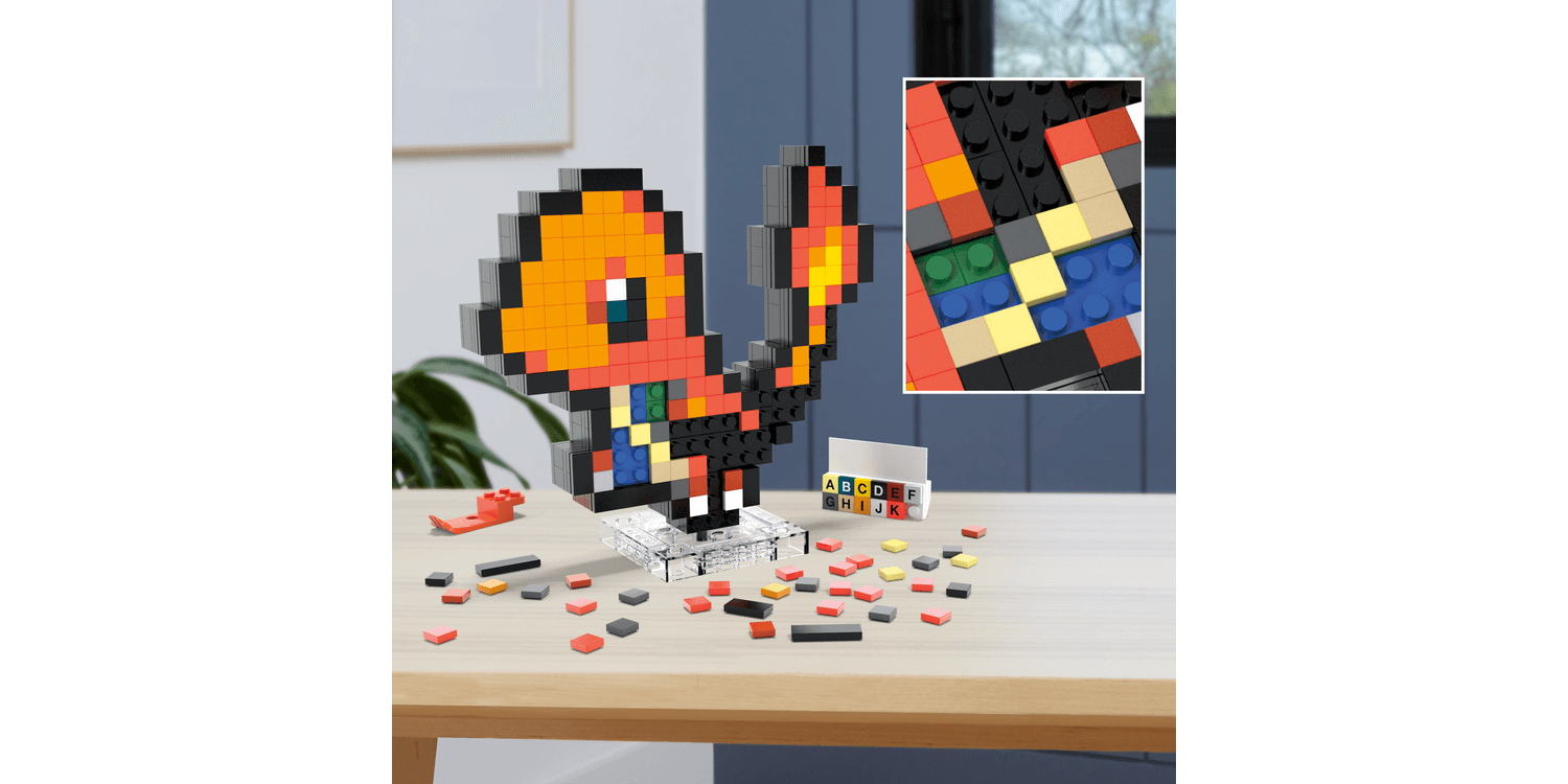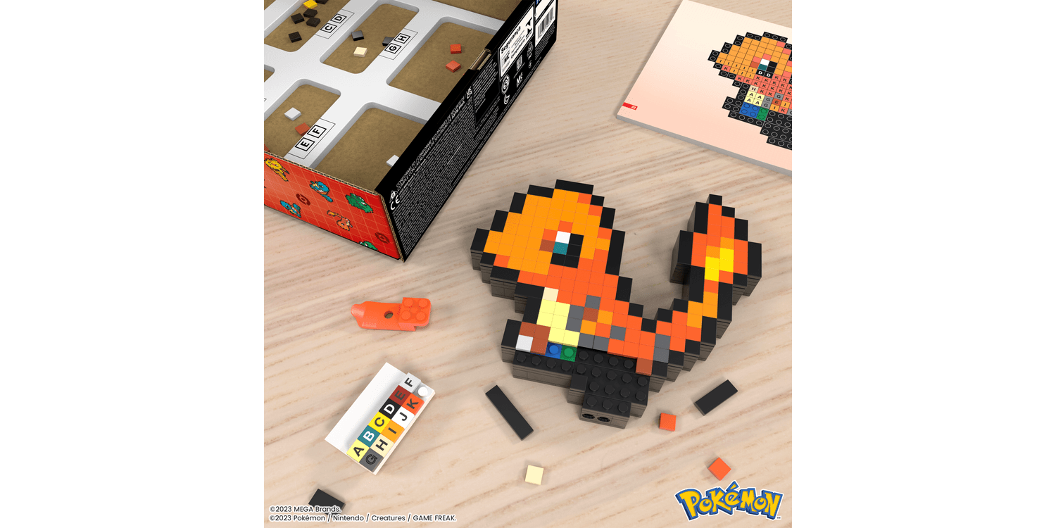 Decorate your space and build some of your favourite Pokémon with MEGA. Build Charmander one brick at a time and create a retro-inspired figure, featuring official Pokémon Pixel Art. Display it on your desk, or mount it on the wall to show off your love of Pokémon. Pair with other Pokémon in the series; each sold separately.