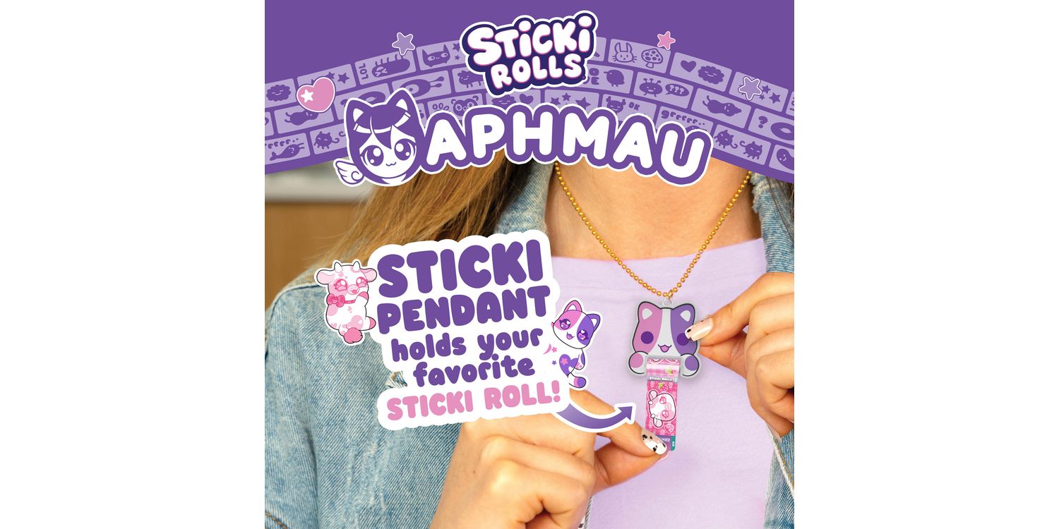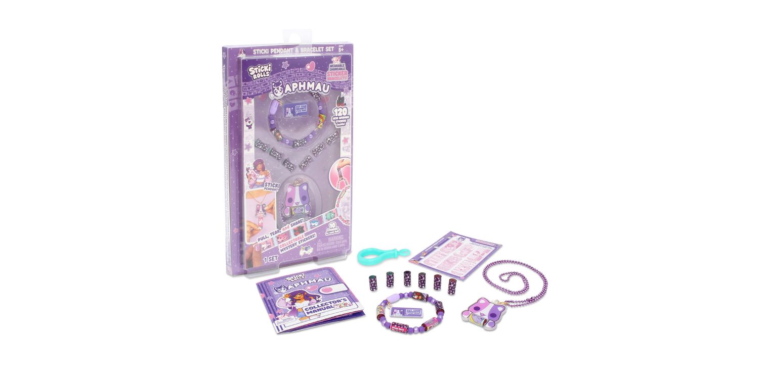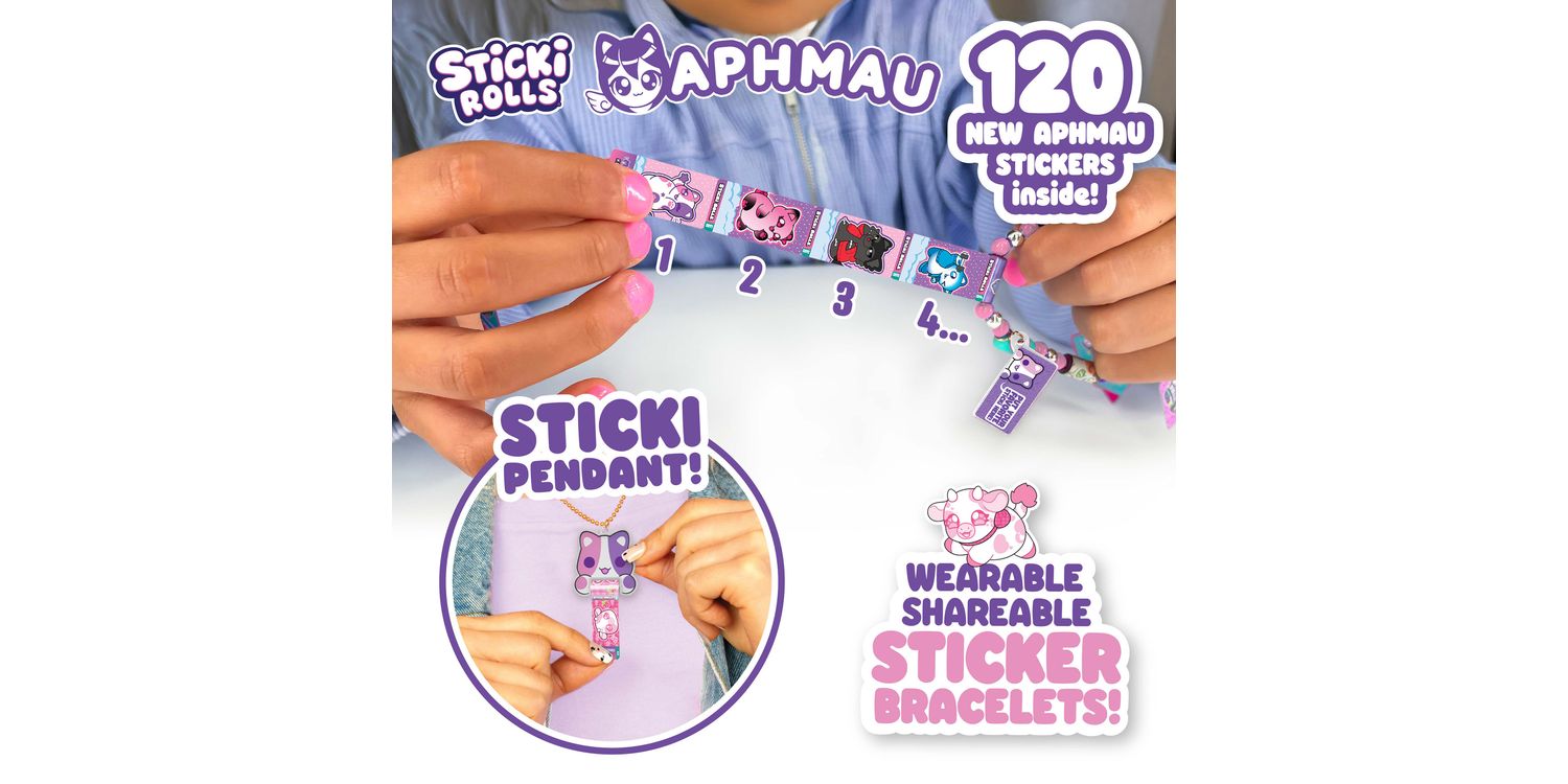 Inside, you’ll find a dazzling holographic pendant that holds your favourite stickers on the go, plus a ready-to-wear bracelet that lets you accessorize in true Aphmau fashion. With 12 unique Sticki Rolls included, each featuring adorable art and surprise characters, you can stick, share, and swap your way through the day.