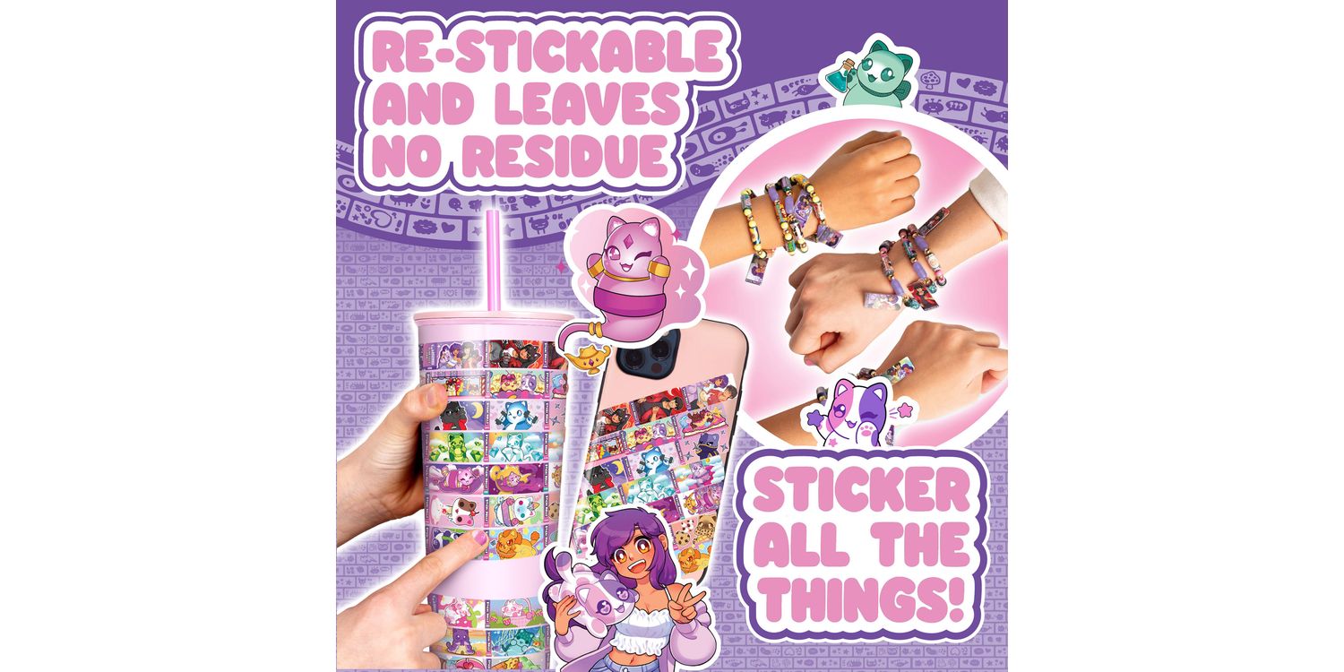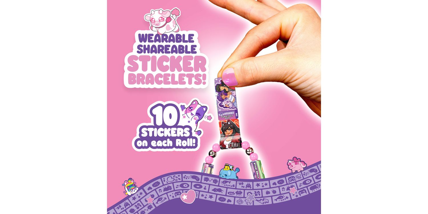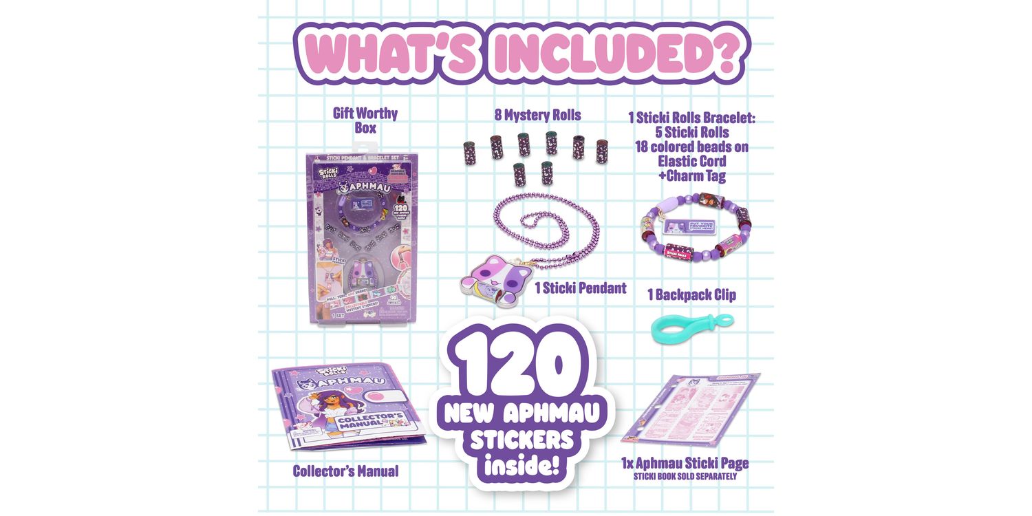 Inside, you’ll find a dazzling holographic pendant that holds your favourite stickers on the go, plus a ready-to-wear bracelet that lets you accessorize in true Aphmau fashion. With 12 unique Sticki Rolls included, each featuring adorable art and surprise characters, you can stick, share, and swap your way through the day.