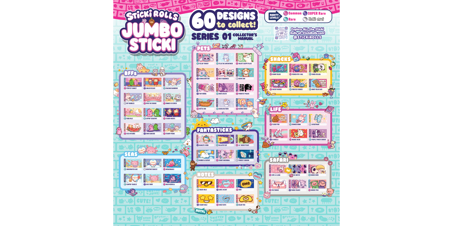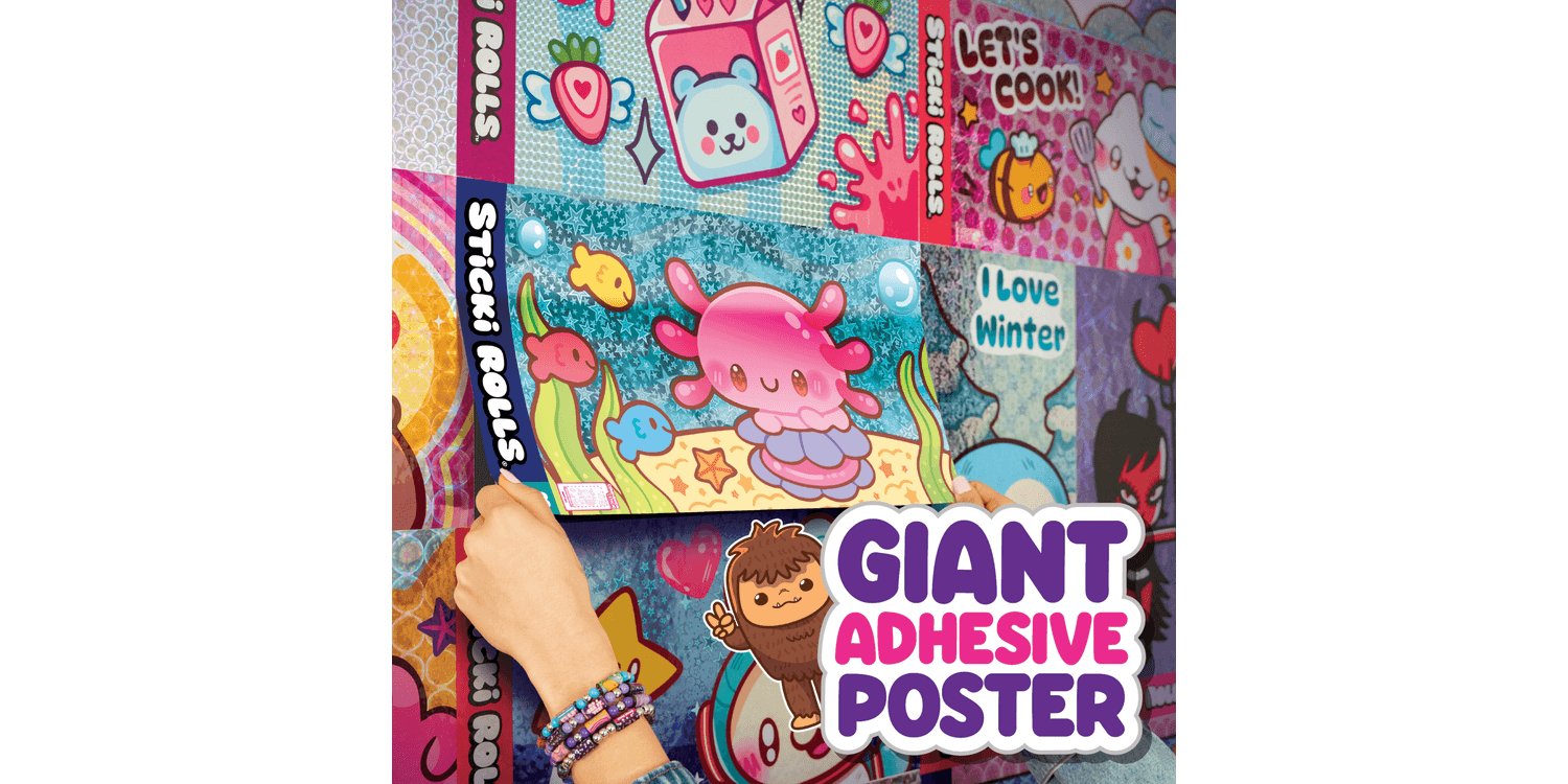 Introducing the ultimate sticker upgrade: Jumbo Stickies from Sticki Rolls! Each tube includes 1 Jumbo Sticki to discover! There's an amazing range of giant foil-holographic stickers featuring original Sticki Rolls characters to collect. Which Jumbo Sticki will you find? Perfect for decorating walls, mirrors, lockers, and more!