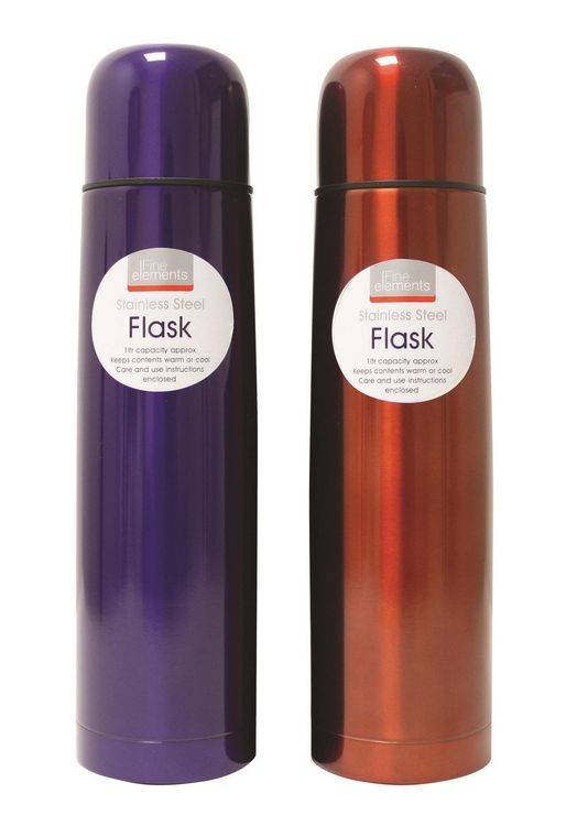 1 litre capacity, stainless steel flask. Ideal for keeping contents hot or cold.