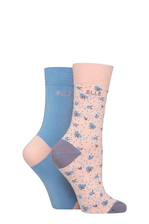 In a value twin pack containing an eye-catching, ornately patterned pair and a plain-legged pair with contrast toes and heels, these soft, pretty Elle Bamboo Socks are made to be easy-going and highly wearable.
