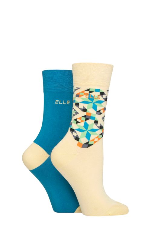 In a value twin pack containing an eye-catching, ornately patterned pair and a plain-legged pair with contrast toes and heels, these soft, pretty Elle Bamboo Socks are made to be easy-going and highly wearable.