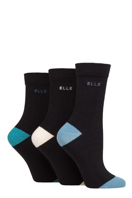 A triple pack of single colour socks with mixed colour details, Elle Combed Cotton Plain Socks with Stripes and Contrast Heel and Toe are delightfully, deceptively simple, but superb quality in fine, soft combed cotton rich yarn.